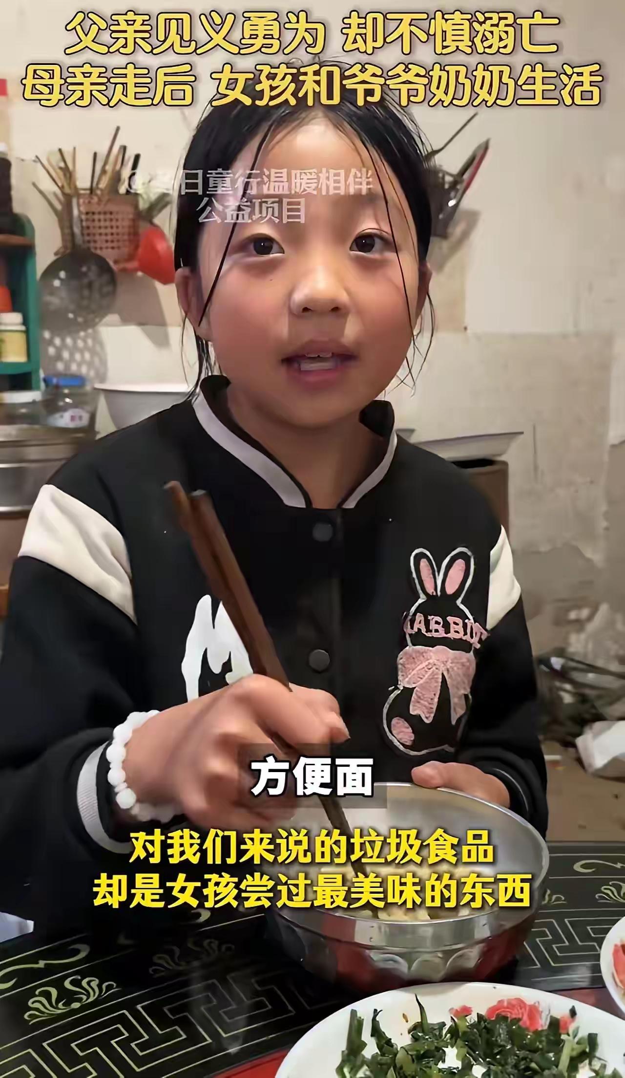 眼泪止不住了!父亲见义勇为,却不慎溺亡。母亲丢下女孩离开,从此女孩和爷爷奶奶相依为命。这天,志愿者去女孩家帮扶,问她吃过最好吃的东西是什么?女孩的回答让人泪目!对我们来说的垃圾食品,却是女孩尝过最美味的东西…… 这简单的一句话,却如一记重锤,击打在每一个听到故事的人心上。一个年幼的女孩,经历了人生中最残酷的考验——父亲为了救人而溺亡,母亲在失去丈夫的打击中选择离开,留下她和爷爷奶奶一同面对这个世界的冷漠与无情。 在这个物欲横流、快节奏的社会里,我们是否还记得,曾经有过这样一份纯粹的善良?她的故事,是许多被社会忽视的角落里的缩影。也许她从未抱怨,反而用最纯真的心去感受这个世界——那天,志愿者问她吃过最好的东西是什么,她用那双清澈的眼睛说出:“垃圾食品。”这句话,瞬间让在场所有人都哽咽了。 你是否能想象?在大多数人眼中平平无奇的“垃圾食品”,在她心中却是最珍贵的“美味”。那是她童年里唯一的慰藉,是她在孤独与失落中,唯一能抓住的温暖。也许,她从未享受到父母的细心呵护,也许,她的世界曾一度黑暗,但那一份简单的“最爱”,却成为她心中永远的光。 这个故事,折射出多少家庭的无声悲剧?又有多少像她一样的孩子,被生活的重压压得喘不过气?他们不需要豪华的物质,只渴望一份温暖和陪伴。我们常常忙于追逐所谓的“幸福”,却忽略了那些默默承受苦难的灵魂。或许,社会的关怀和善意,就藏在那些看似微不足道的细节里。 我们常说“善待他人,就是善待自己”,但在现实中,又有多少人会停下来,去关注那些被忽视的角落?这位女孩用最纯粹的心告诉我们:即使生活再苦,再难,心中那份对美好的渴望,一直未曾磨灭。她用简单的“垃圾食品”,告诉我们:真正的幸福,可能就藏在那些看似普通的瞬间里。 这故事,让人深刻反思:我们是否还记得那份最初的善良?是否还记得,帮助别人,也是在帮助自己?也许,我们都可以从自己做起,从身边的小事做起,用一点点关爱,点亮那些孤独的灵魂。因为,真正的温暖,不在于金钱的堆砌,而在于一颗善良、感恩的心。 你是否也曾被这样的故事触动?你又会如何行动?留言告诉我你的想法吧。让我们一同用善良去温暖这个世界,让每一个像她一样的孩子,都能在爱的阳光下茁壮成长。父亲救人而亡 父亲救溺水