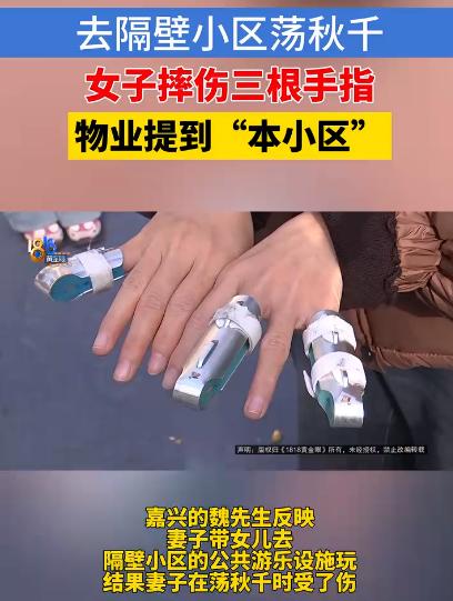 浙江嘉兴,女子带孩子女隔壁小区玩秋千,不小心摔伤3根手指头,去找物业赔偿,物业说:“你们不是我们小区的业主,自己来玩摔伤了,怎么能要求我们赔偿?怎么证明是在我们这摔的?”女子老公:“不是你们小区业主就不能来玩吗?” “不是这个小区的业主,摔了也要自己认?”这句话一抛出来,很多人的心里咯噔一下:要是换成自己,带孩子去隔壁小区玩一会儿,出了事,难道真的只能自认倒霉? 那天魏先生的妻子带着女儿,到隔壁小区转转。两个小区挨得不远,平时进进出出也没人拦。孩子一眼就看上了小区里的秋千,吵着要玩。作为家长,看着是公共区域、公共设施,也没多想,就陪着孩子上去了。 谁也没想到,意外就这么来了。 秋千刚荡起来没多久,突然“咔”一声,一侧连接部位脱落。人还没反应过来,身体已经失去平衡,魏先生的妻子下意识伸手去撑,结果伤到了手指。 换成谁,第一反应都不会是“算了”。魏先生随后找到小区物业,希望能就秋千的安全问题和赔偿进行协商。毕竟,秋千属于公共游乐设施,维护和管理责任,绕不开物业。 可物业的回应,却让人听着心里不太舒服。物业工作人员的说法很直接:你们不是我们小区的业主,而且当时没有第一时间来找我们,现在没办法证明手指就是在我们这里受的伤。 一句话总结:身份不对、时间不对、证据不足。 魏先生当场就急了。他反问了一句,也戳中了不少人的痛点:“不是你们小区的业主,就不能进来玩吗?那为什么平时没人拦?” 现在不少小区的公共区域,表面上是“开放式”,没有门禁,没有保安盘问,外人进出自由;可一旦出了事,身份立马成了“挡箭牌”。平时欢迎热闹,出事就划清界限,这种反差,很容易激起情绪。 虽然物业可能也有顾虑,因为不是本小区业主,意味着管理边界模糊;事后再来反映,没有第一时间报警、报修、留证,确实增加了核实难度。万一有人“碰瓷”,物业也怕背锅。 可问题在于,这次不是凭空找事,而是实实在在的骨折,是能查、能验的伤。 事情目前还在协商中,双方各执一词。希望这件事能有一个公平的结果,毕竟安全设施不是靠“是不是业主”来区分责任的,坏了就是坏了,伤了就是伤了,该查原因就查原因,该担责就担责。 信息来源: 1818黄金眼丨荡秋千时三根手指受伤,物业提到“本小区” 文丨小王 编辑丨史叔