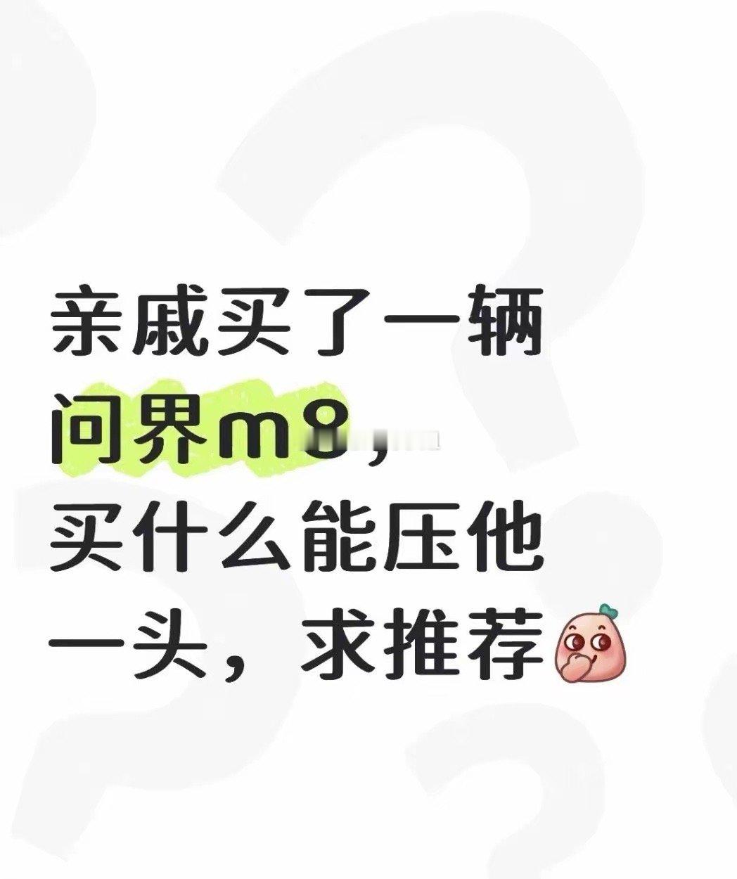 太离谱了,亲戚买了问界 M8,请问买什么车可以压他一头,也搞不懂,亲戚今年突然买车了,原来以为也就十来万的车,结果前几天一次聚会,他开了问界 M8 过来,查了一下 40 多万,请问买什么车可以压他一头,求推荐?