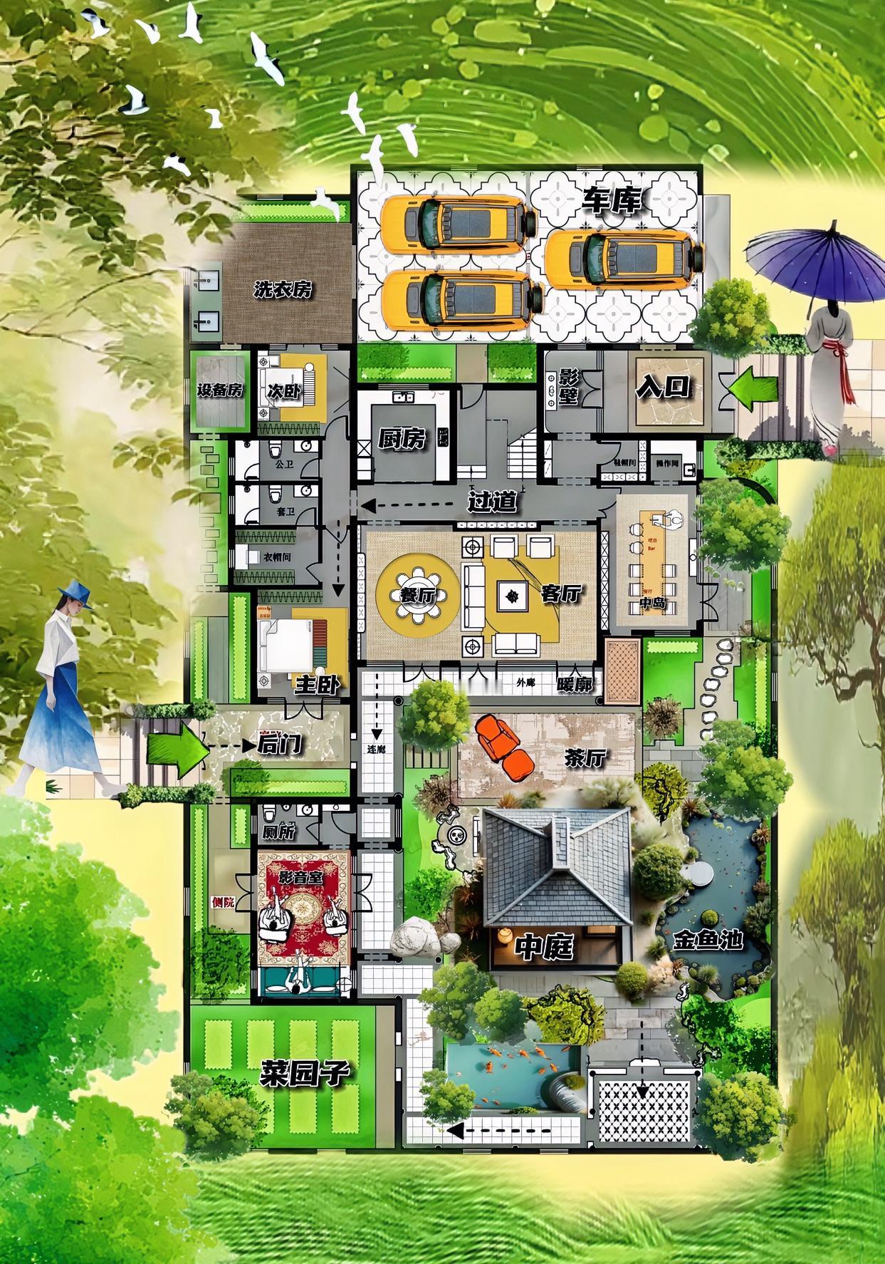 这期户型观后感,不管前院进,后院出,花园才是你的世界,迈三台阶就是你的家。580㎡拘泥于眼前的一方天地,被逼仄8八亲爱的菜地,绑定生活,126㎡花园绑架自建房的一生! 花园在哪里,全世界的精彩,为你敞开有品味怀抱! 它这几个方面,布局相当大方,东库能纳四辆车,洗衣房能打乒乓球,菜地能上八种蔬菜,侧院都能养花种草,后院的门厅比前院的影壁,更敞亮,整个园子一点不自卑! 它在最关键的地方,不物质,而是造意境大于实用性! 比如说三亭花园,细研究才发现,没大面积铺砖,也没大面积种草,而是小鱼池,大荷塘,大亭阁,小楼台,打造出让大宅焕然新生的全新家居环境,这种大美的东西,往往会伴随八个房间! 另一最关键的暖廓,八个不起眼,却是输出意境最炫酷的过道,别人的暗黑的,这儿却是花枝招展的,一直在路上,一直造梦境! 所以说,这个卧室只有俩个,横厅不长,门厅侠小的自建房,凭一园,一厍,一菜地,讲出中式家居布置,户型最强王者平台!