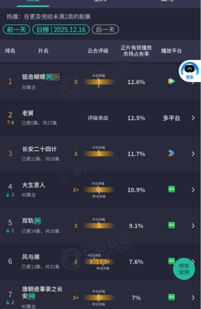 郭京飞今年实力好强! 年初爆了一部一番出演的《漂白》,虽然剧中出圈的角色也不是他,但他是一番男主,刚开播的《老舅》直接逆袭云合榜单第二了,开播第二天,云合翻了三倍,占比12.5%,只比《狙击蝴蝶》少0.1%,明天估计是要登顶了,成毅和虞书欣的两部剧估计也很难登顶了,毕竟《老舅》才刚开播,我打算去看看啥样的老舅这么猛。