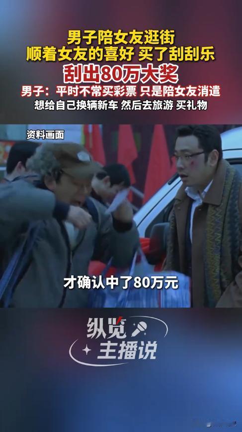 “意外的惊喜!”12月12日,陕西渭南,一男子陪女友逛街时,因女友喜欢刮彩票,他