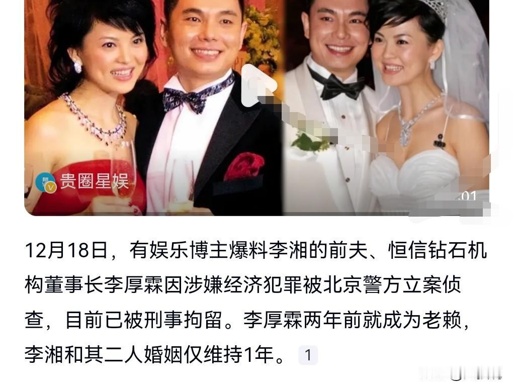人呐,千万不要走错路。 做人内心要追求简单,知足常乐。 12月18日网传曝李厚霖被警方刑拘。 因为涉嫌经济犯罪。 曾经他和李湘结过婚,没想到在一起一年就分开了。 人生总是那么的充满变数。 我们曾经梦寐以求的东西,总会随着时间的过去而变化。 人生难得的是一辈子不做坏事。