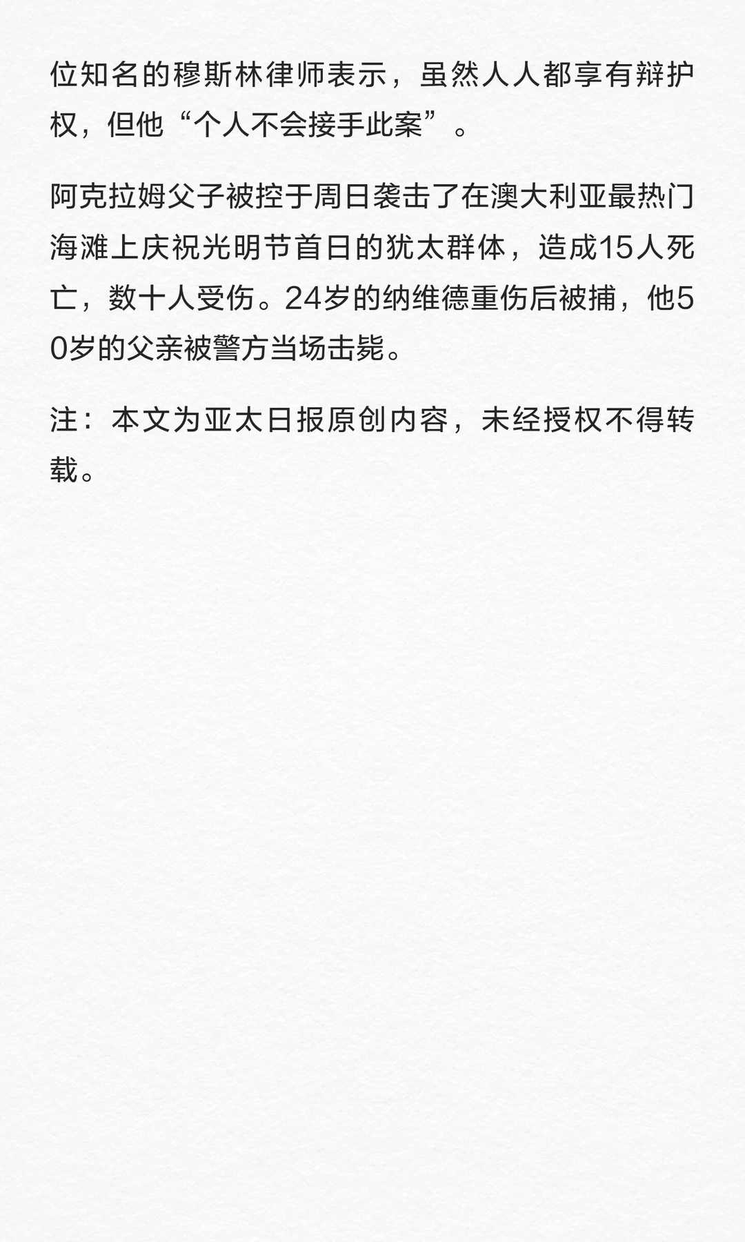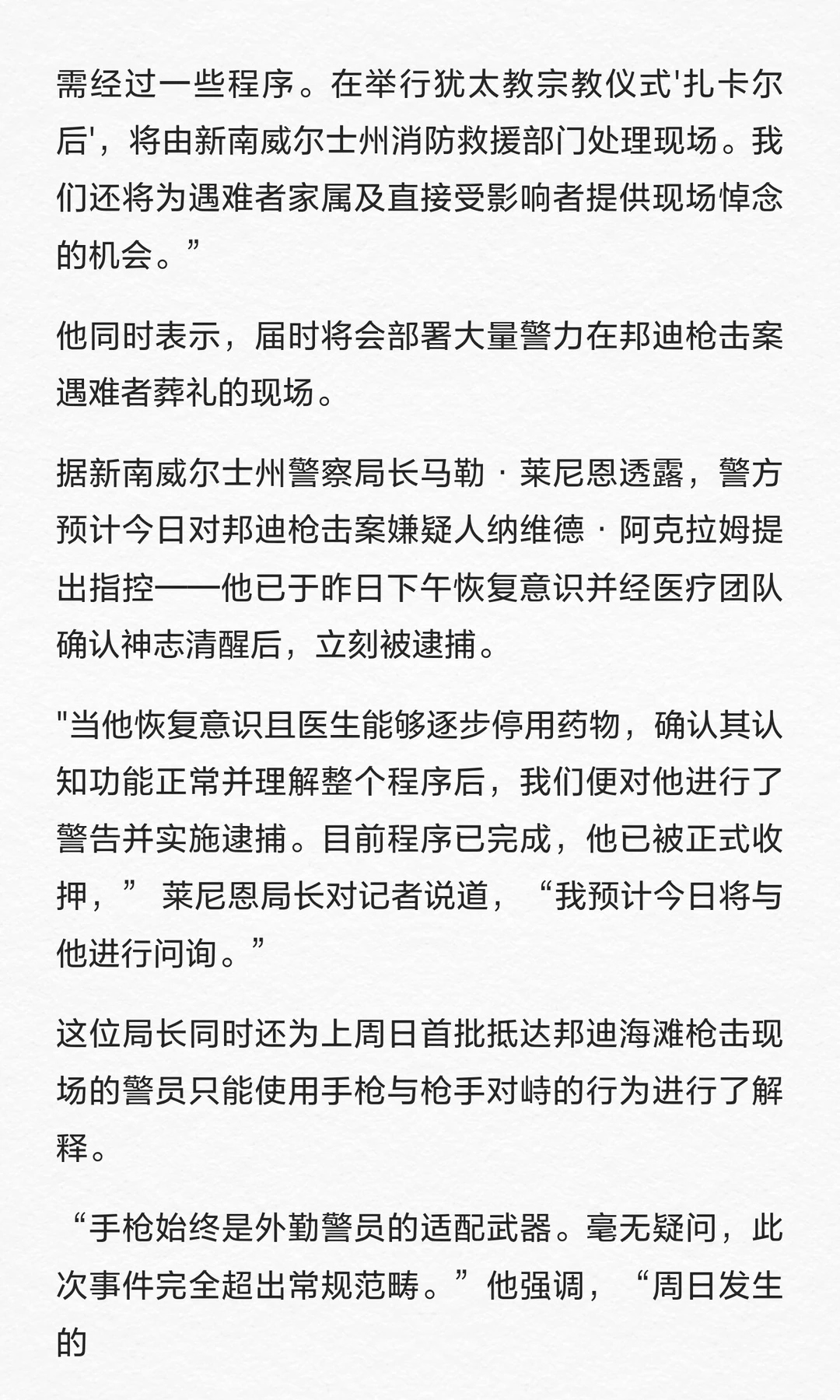 邦迪海滩枪击惨案悼念仪式举行,枪手已苏