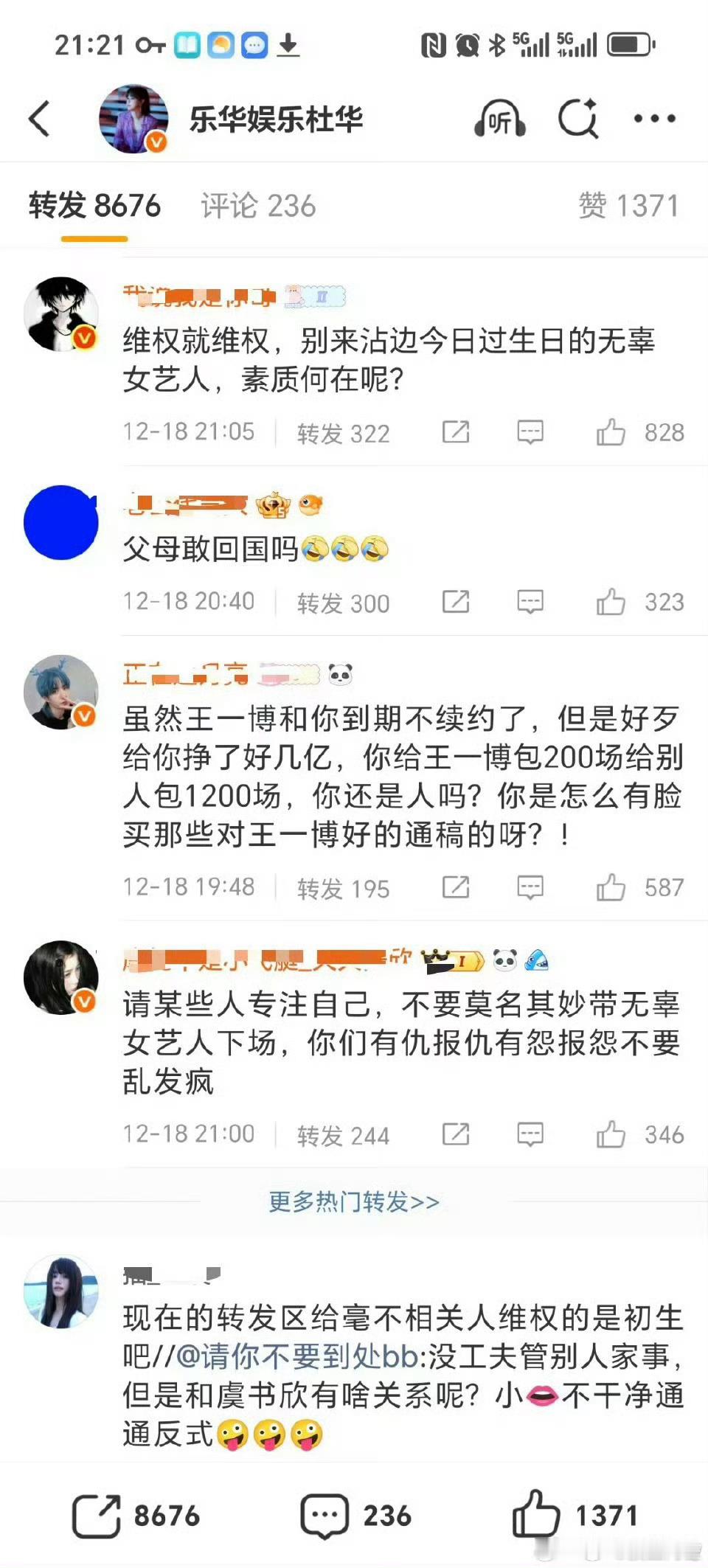 杜华微博转发都是王一博粉丝和虞书欣粉丝维权,怎么了。