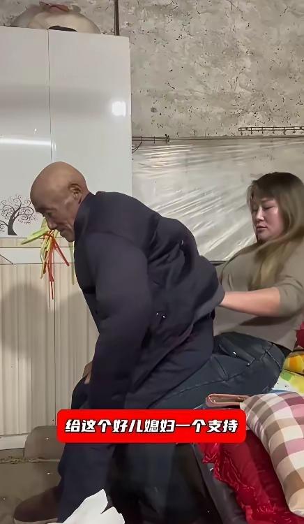 这样的女人真的少见! 38岁女子,丈夫常年在外打工,为了照顾公公,她居然跟公公同房睡觉。 一场“道德审判”的导火索,仅是一张照片。它似石子坠入静湖,刹那间,舆论与评判的涟漪泛起,于无形之境掀起轩然大波,引发无数关注与争议。有人盯着画面里儿媳把老人护在怀里的姿势,还有人对于“为了方便夜间照料,儿媳直接搬去和公公同屋睡觉”这个细节耿耿于怀。 甚至还有人站在道德制高点上发问:38岁,正值壮年的女性,难道不知道避嫌吗?即便家里没别人,男女之间那道红线,怎么就能因为“照顾”二字说跨就跨了?还有网友支招,说花钱请个男保姆,或者换个更“体面”的照护方式不好吗? 然而,抛开这些轻飘飘的键盘议论,把目光下沉到这个普通家庭如铁一般沉重的现实里,你会发现,所谓的“体面”在生存面前,简直轻薄得不值一提。 这绝非仅是一位38岁女子的艰难抉择,实则是一场“脸面”与“救命”间的激烈博弈,在矛盾冲突中,尽显人性困境与现实无奈。 且容我们先谈谈那颇具争议的“同屋而眠”之事。此现象引发诸多讨论,背后所涉的观念、情感等元素,皆值得细细探究一番。在这个特殊的家庭架构里,中间那根顶梁柱——丈夫,是缺失的。为谋家中生计,男人背井离乡,常年漂泊在外务工。如此一来,家中一应重担,便如磐石般沉甸甸地压在了妻子柔弱的肩头。 婆婆早逝,令人扼腕。公公年逾古稀,身体状况亦江河日下。如今更是瘫痪在床,生活难以为继。这般凄凉境遇,着实叫人痛心疾首。对于一个全瘫病人来说,夜里的一口痰、一次翻身的需求,如果没人听见,可能就是阴阳两隔。 儿媳搬着被褥住进公公屋里,哪里是为了什么别的,纯粹是为了在老人夜里哼一声的时候,她能第一时间从床上弹起来。相较于那些无谓的闲言碎语,她更忧心老人于隔壁屋悄然遭遇意外。若如此,便着实有负在外辛劳拼搏的丈夫。 再观那些令人顿生“难为情”之感的贴身护理。为公公擦拭身体、料理大小便之事,于诸多儿媳而言,着实是一道难以跨越的心理沟壑,横亘心间,成为难以言说的困扰。谁心里没有过那一瞬间的尴尬和心理障碍? 这位女子起初也一样,面对这样一个有着辈分差异的男性长辈,那种来自性别和伦理的本能排斥是真实存在的。但摆在眼前的只有两条路:要么因为这点“难为情”让老人沤在脏污里受罪,要么咬牙把那层心理防线踩碎。 她后来逼着自己换了个心境——就把面前这位老人当成自己的亲爹,当成一个单纯需要帮助的无助病患。谁能避免岁月老去?当风烛残年,身罹沉疴、瘫痪在床之际,又有几人能始终维系那所谓的尊严?在生命的迟暮,诸多无奈或许已悄然消解了这份矜贵。 想通了这一点,端屎端尿、穿衣喂饭这些又脏又累的活计,也就成了像吃饭睡觉一样的日常。老人心怀愧疚,自觉成为儿女负累,更觉让儿媳操劳多有不妥。儿媳善解人意,反倒宽慰老人,劝其莫要思虑过多,放宽心怀。 这般突破常规的悉心照料,究竟是否值得?此问萦绕心头,引人深思,似在探寻这非常规之举背后,所蕴含的价值与意义。现实里有的是更加残酷的对比样本。 就在我们身边,哪怕条件比这好上百倍的家庭,也未必能有这般温情。有这么一个案例,一位老太太生养了6个儿子,家里那叫一个富裕。按理说,有钱有人,老人的晚年该是享福吧?可后来老太太得了脑溢血,虽说命保住了,但落下了半身不遂,吃喝拉撒离不开人。 结果呢?那个富裕的院落里,六个儿子谁也不想贴身伺候,媳妇们为此吵翻了天,最后想了个折中办法——送饭。饭已送至眼前,然而诸如守于床畔悉心照料屎尿这般的琐碎之事,却无人甘愿承担,皆避之不及。时光荏苒,未及两载,老太太便在满心的郁郁寡欢中离世了。她带着无尽的怅惘与哀愁,悄然告别了这纷繁尘世,令人唏嘘不已。 两相对照,强烈的反差跃然而出,这般鲜明的对比,难道不令人深感其中蕴含的辛辣讽刺意味吗?一边是有6个儿子却守不住亲娘命的富裕家庭,理由或许就是不想受那个累,或者觉得太脏太麻烦; 故而,在2025年12月17日这一日,当我们再度复盘这一故事之际,是否应当转换视角,以全新的方式去审视它?那些对于“姿势不雅”、“男女有别”的指指点点,在那份为了家人活命而豁出去的实干面前,显得是多么苍白且虚伪。 如果所谓的“礼数”是要以老人的生活质量甚至生命长短为代价,那这种礼数不要也罢。尘世中有一种至孝,无关功与名、不惧言与议。它摒弃了外在的畏葸,以无畏之态直面脏累,即便招来闲言碎语,亦坚守本心,传递着最纯粹的孝道。这位女子怀里托着的,不是什么容易引发联想的暧昧,而是一颗把公公当亲爹待的金子般的心,是对那个在外打工的丈夫最硬核的支持。 常言道,久病床前见人心。漫长的病床守候时光,恰似一面明镜,不仅能映照出孝子的拳拳深情,更能清晰折射出人性的良莠不齐,百态尽显。这位于世俗眼光中“不避嫌”的女子,恰恰给我们所有普通人,上了一堂最实在的课。