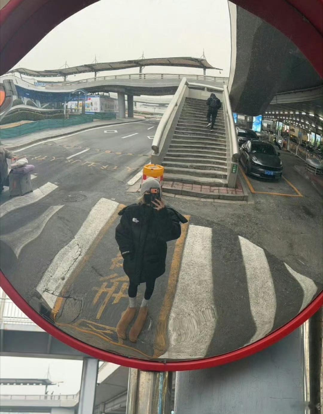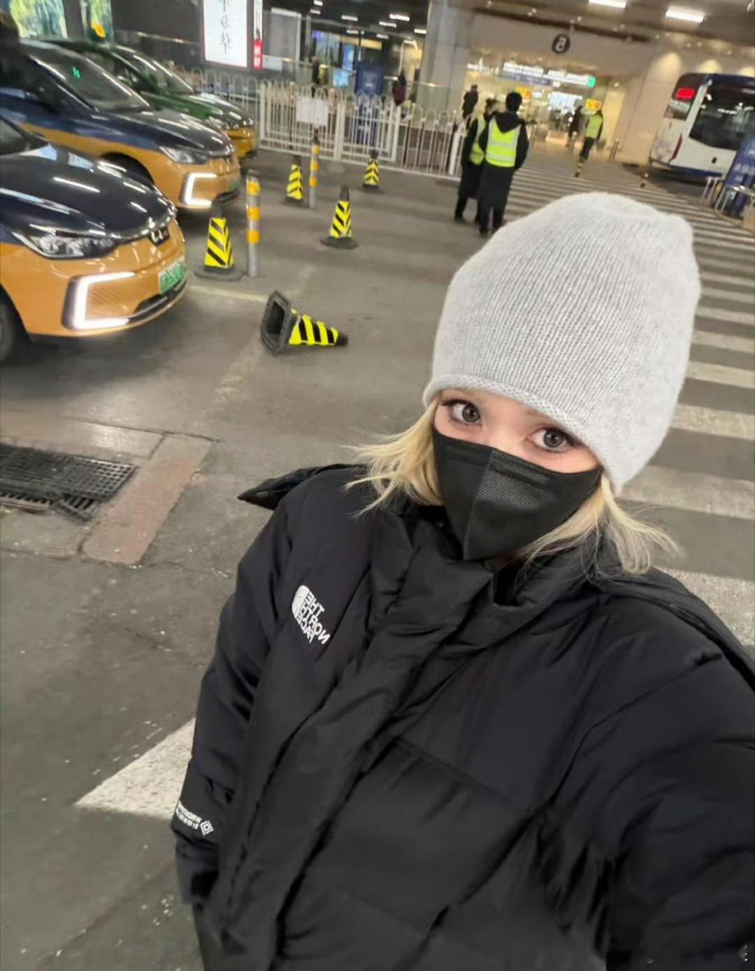 Somi来北京也得穿黑色羽绒服 可别把孩子冻坏了🥶🥶