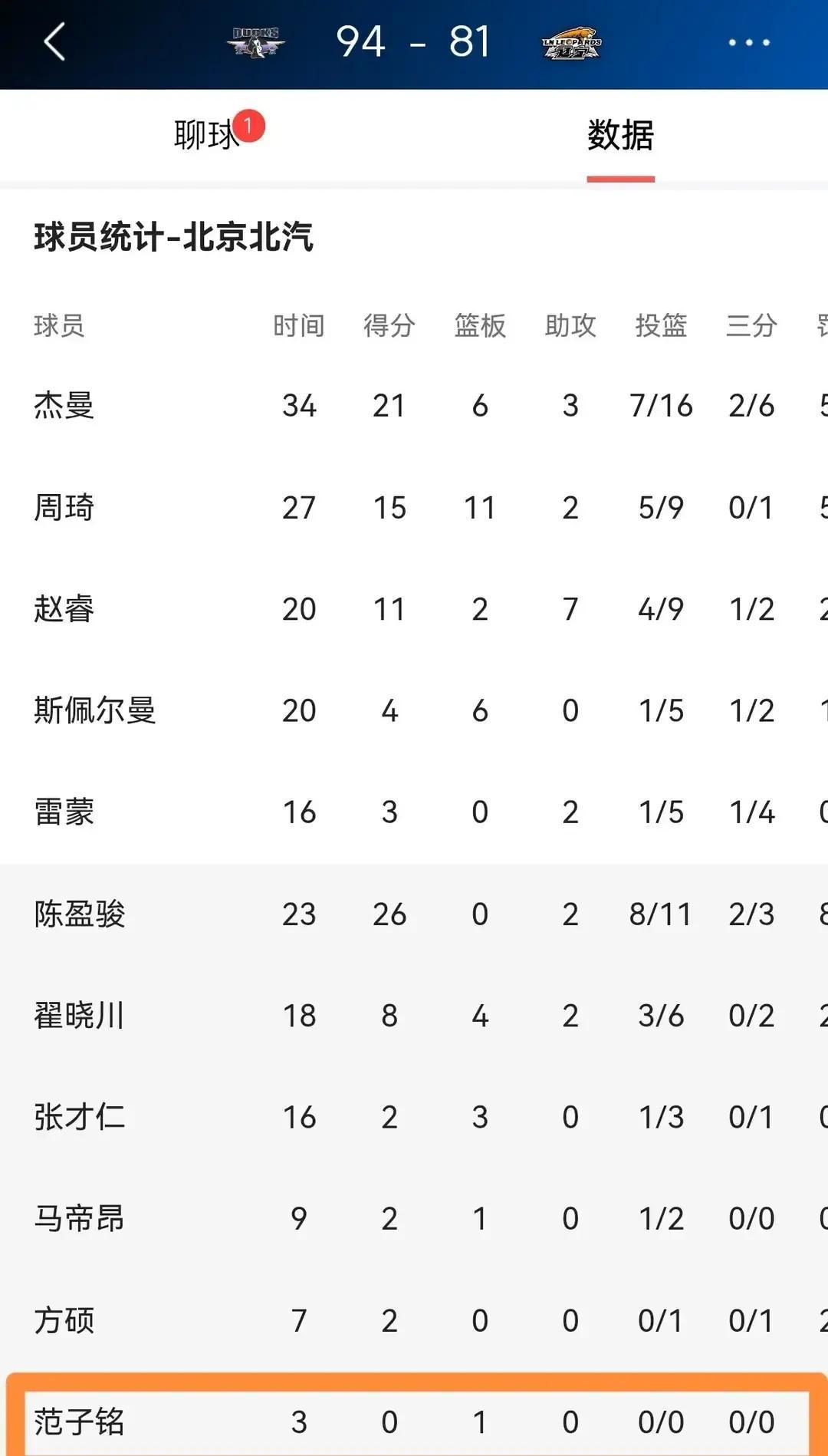 更衣室最安静的时刻,是赛后毛巾扔进洗衣筐那十秒。 范子铭的数据栏,最近五场只占三行:场均8.2分钟,3.4分。而三个月前,这个数字是21分钟和10分。战术板上的跑位箭头,绕过了他这块曾经的高地。 北京队在新帅手下正在提速。利夫和丘天在场上折返,像两台开足马力的越野车。传统的低位背身,在攻防转换的秒表里,成了奢侈品。他赛后那句“服从安排”很职业,但微博头像已经凝固了两周。 俱乐部看到了。休赛期计划已递到他手上:三分训练课程表。他本赛季33%的远投命中率,是张未被完全兑换的支票。杨毅点破了窗户纸:“现代篮球在给五号位换发动机。” 时代筛掉的从来不是努力,而是固守。当赛道突然转向,最快的刹车反而会成为负担。真正的比赛,从战术板延伸到训练馆的凌晨。 要么进化出新的爪牙,要么在轮换表上渐渐透明。