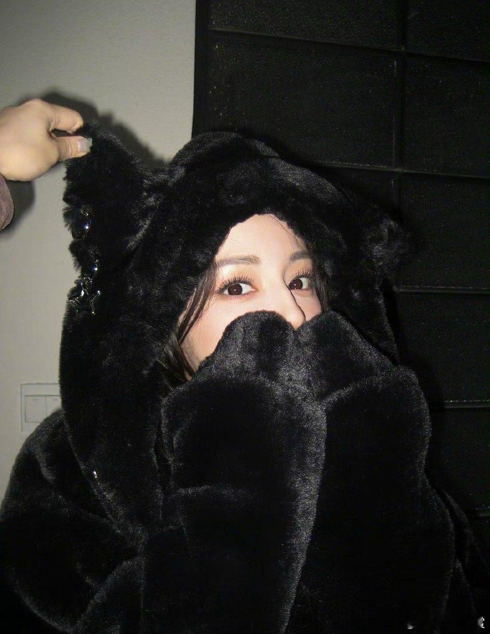 迪丽热巴微博营业,晒黑色小猫耳帽子自拍,好萌的一只小黑猫,又酷又俏皮,太可爱了!