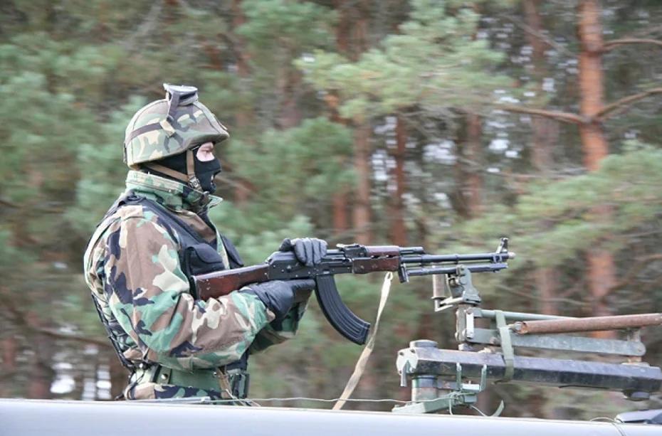 拉脱维亚国民警卫队士兵使用 RPK 7.62 毫米班用自动武器作为车载武器。