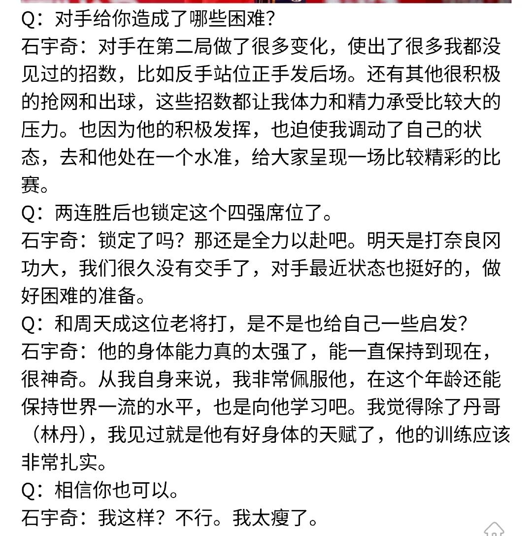 是谁?被世界第一石宇奇誉为林丹之后最强身体素质! 是谁?令世界第一石宇奇感叹自己太瘦了! 是谁?35岁了还在孜孜不倦,上下求索,寻求技战术上的更新!