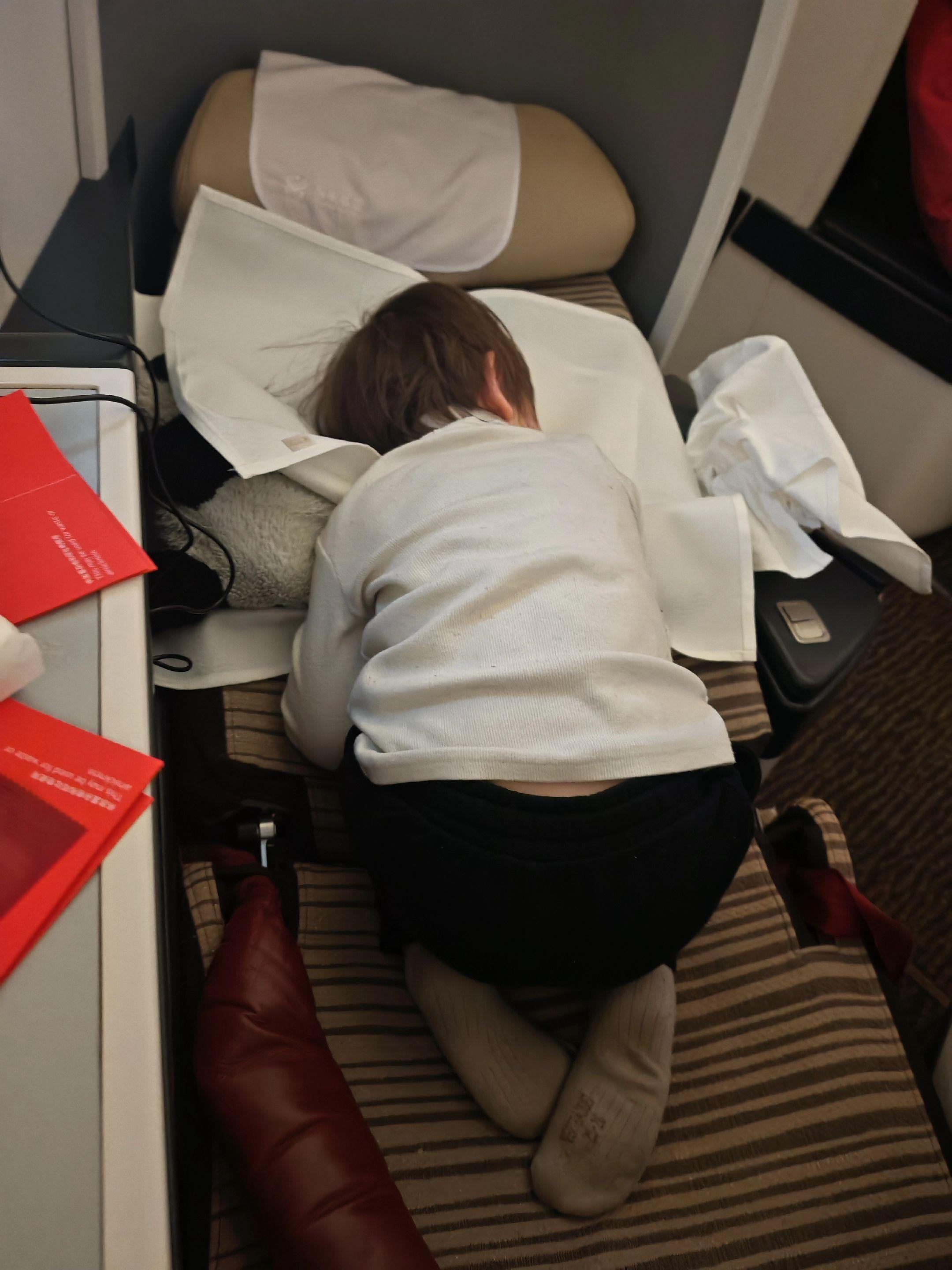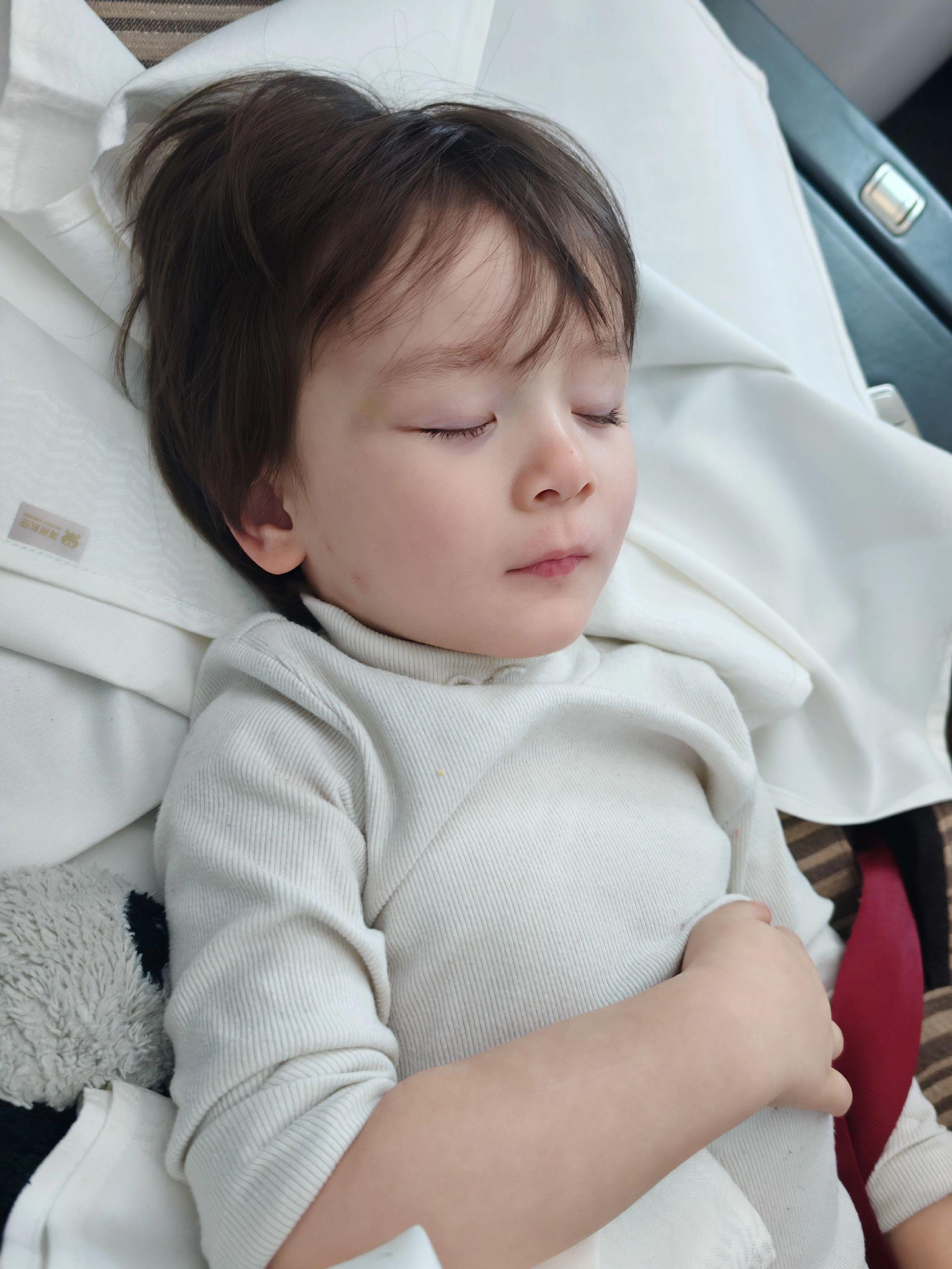 博宇不舒服,在飞机上吐了三次,心疼博宇
