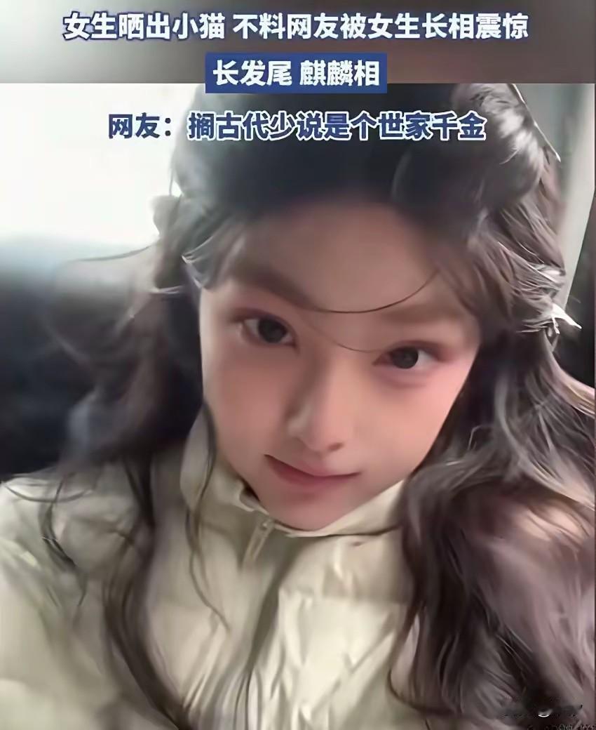 女生就是拍了自己的小猫, 本来想晒一晒可爱的猫咪, 没想到自己的颜值被网友认可, 有网友表示这是古代世家千金的长相, 长发尾,麒麟相, 虽然女生的颜值还不错, 但是也没有说的那么夸张, 古代世家千金都是大家闺秀, 该女生的长相明明很现代, 难道就是因为化了淡妆? 这才让人刮目相看吗? 可能是有很多喜欢养猫的少女! 猫系少女照 猫系美女 猫美照 少女感小猫 小猫帅照 美女萌猫 古风小猫