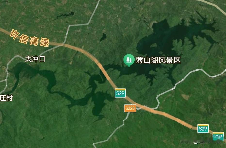 这个龙形大湖叫薄山湖。作为确山县唯一的大湖,却没有以本县标志性的确山来命名,而是直接以水库坝附近的一个小山包薄山来命名,是有点儿遗憾的。因为确山虽小,来头可不小,《一统志》《寰宇通志》等古籍中均明确记载了这座小山,就在县城南面十里,因为山上有泉,泉水注入石洞中,声音就像舂米(搉米)。而搉与确同音,所以后来建县时,就以确山作为县名了。如能利用这个文化底蕴,把“确山——薄山湖”打造成文旅走廊,对这个小城不失为一个很好的发展点。