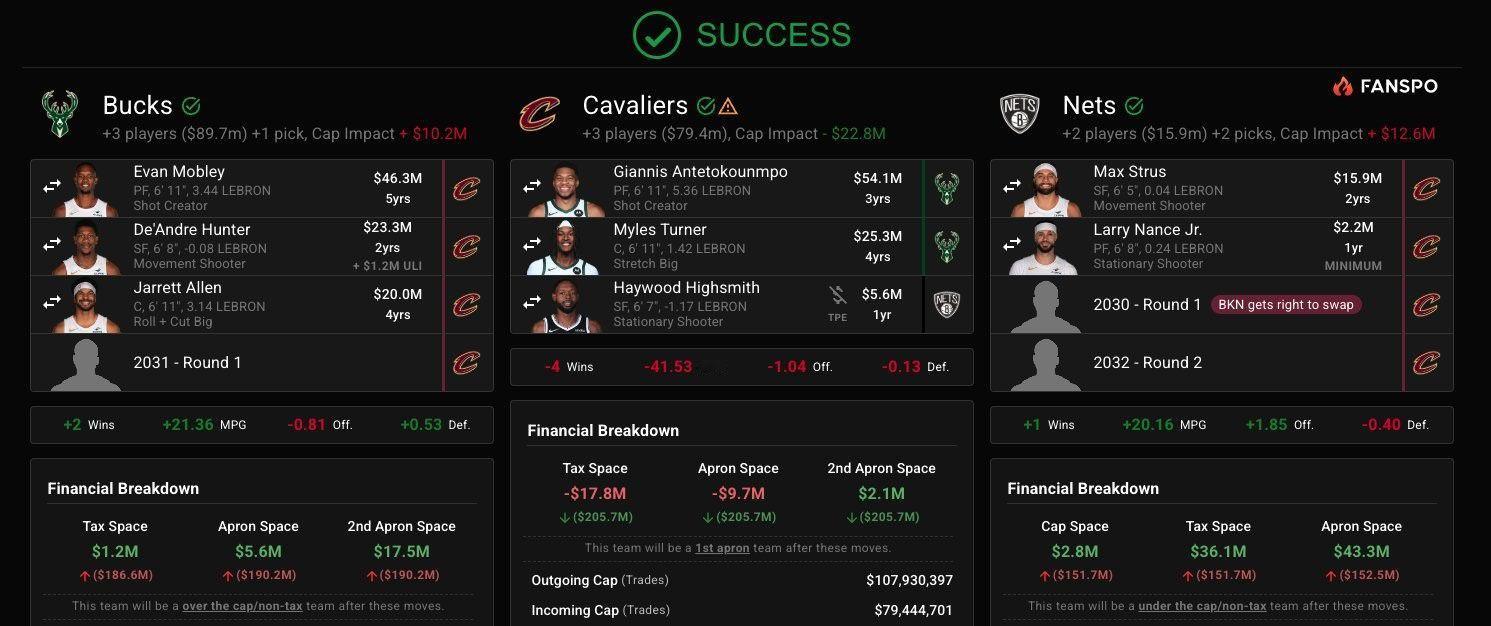 看到有几个老美的记者讨论,说骑士应该去追逐字母哥,因为他们现在的阵容是打不过尼克斯的,然后有人提了这么一笔三方交易,虽然在模拟器里是能通过的,但掏出自己两名分别24岁和27岁的年轻内线去换31岁的字母的和30岁的特纳,值得吗?新赛季篮不住NBA