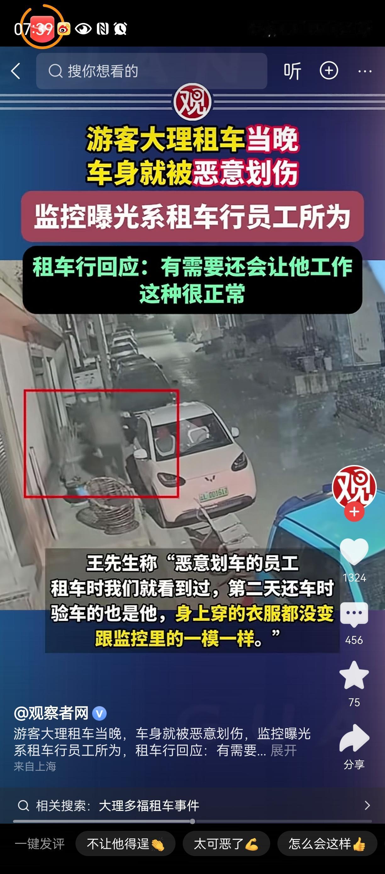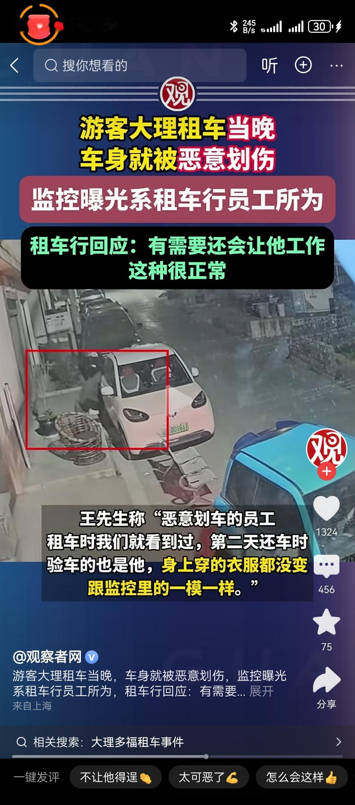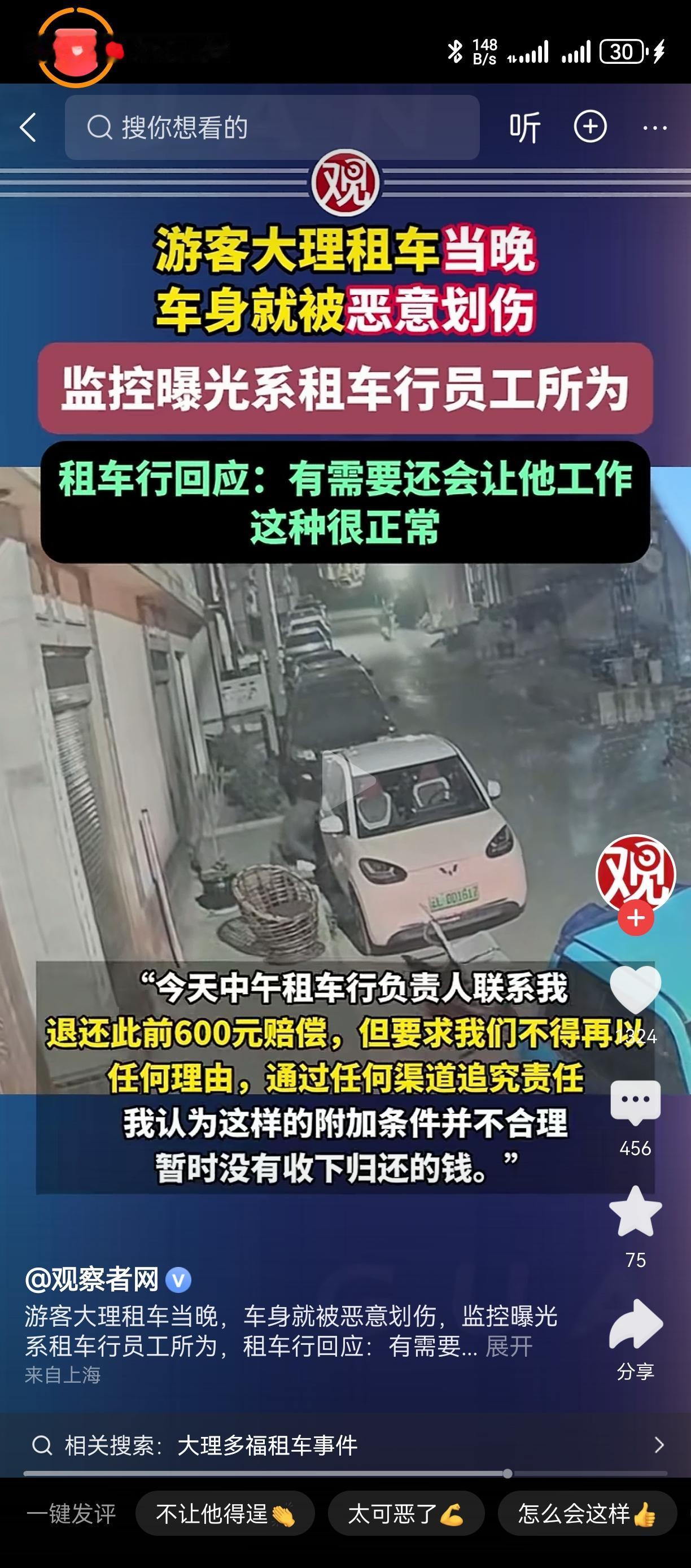 这不是放纵犯罪? 明显这个员工是职务行为, 他和租车的又没仇? 会不会里面有分成??? 这是典型的贼喊捉贼啊[祈祷] 明眼人一看, 这就是团伙作案, 绝对不是第一次! 希望上级机关介入, 并希望广大受害者及时举报 让这家黑心车行开不下去!租车乱扣押金 租车人