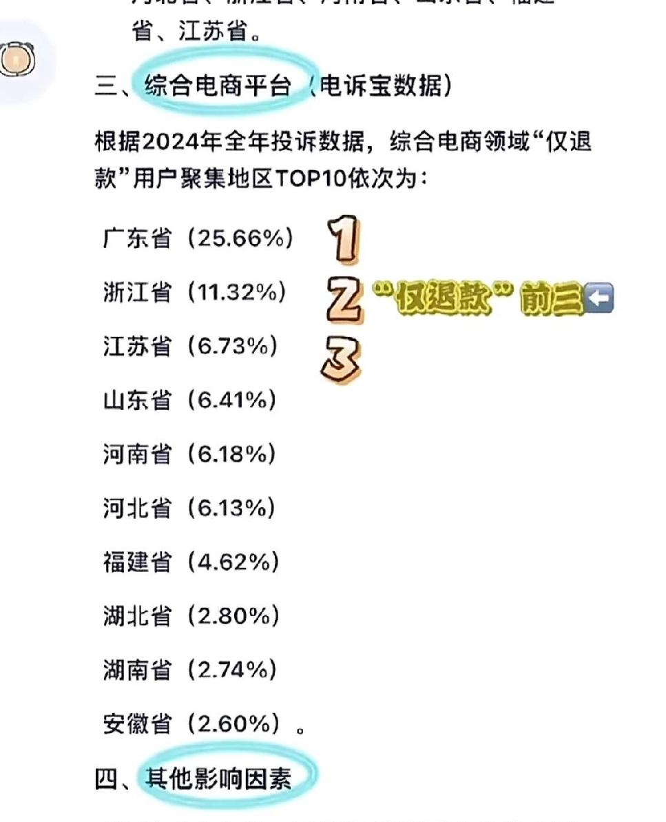 很多网友发现,一些企业都开始屏蔽山东地区,如山楂树下,王小卤等多个品牌。 山东仅退款,就像山东人爱考公,在南方人没有数据支撑却不遗余力的宣传下,成功成为多数人的刻板印象。 尤其某个带浙字的省份,是黑山东的主力军。甚至故意给山东发出残次品等着山东仅退款,然后进行网络宣传! 实际上,山东的仅退款在全国不仅不是最多,连前3都挤不进去! 无所谓,山东人内部都能运转的起来,如果刷到这些企业的山东人,我们一定要购买吗? 如果山东人还是默默承受,不愿反击,那我们就会被彻底抹黑,形象将被彻底固化,如同BBC抹黑中国