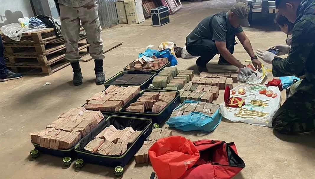 泰国军警在东北部边境四色菊府一处仓库中,起获总值约1435万泰铢(约186万令吉)的现金和黄金首饰,由于仓库对面便是赌场区域,案件疑似与跨境“灰色资本”网络有关 当局是于周三(17日)在普兴县冲桑岩展开行动,在仓库内起获1103万1150泰铢(约143.2万令吉)现金、33件价值约332万6900泰铢(约43.2万令吉)的黄金首饰以及7架手机。 当局怀疑这批现金和金饰,可能被不法集团用于建立流动基地、购买武器弹药与无人机技术,以及和柬埔寨一侧的跨国电诈与诈骗集团存在联系, 当局也扣押了多名嫌犯,目前正在深入核查资金流向、资产持有人背景及通讯记录,而边境地区的异常资金与非法经济活动,将成为下一阶段重点清剿目标。