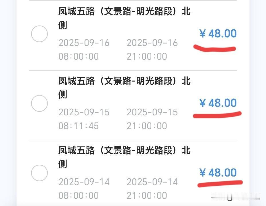 西安城北经开区路边停车费涨价了吗? 我记得原来从早上八点到晚上九点停满一天13个小时,收费在38-39元,不会超过40元。昨天我停了一天,扫码发现需要支付42元停车费,再一看之前的欠费单,今年9月份停了几次都是48元。我记得原来是一小时2元,现在是不是一小时4元了?有知道的朋友吗? 如果是这样收费,那经常停车的人可是一大笔开支,违章停车的人会越来越多,因为违停一次处罚也就100元,停一个月也就处罚一次。如果在路边车位上停车,两天就差不多一百元了。