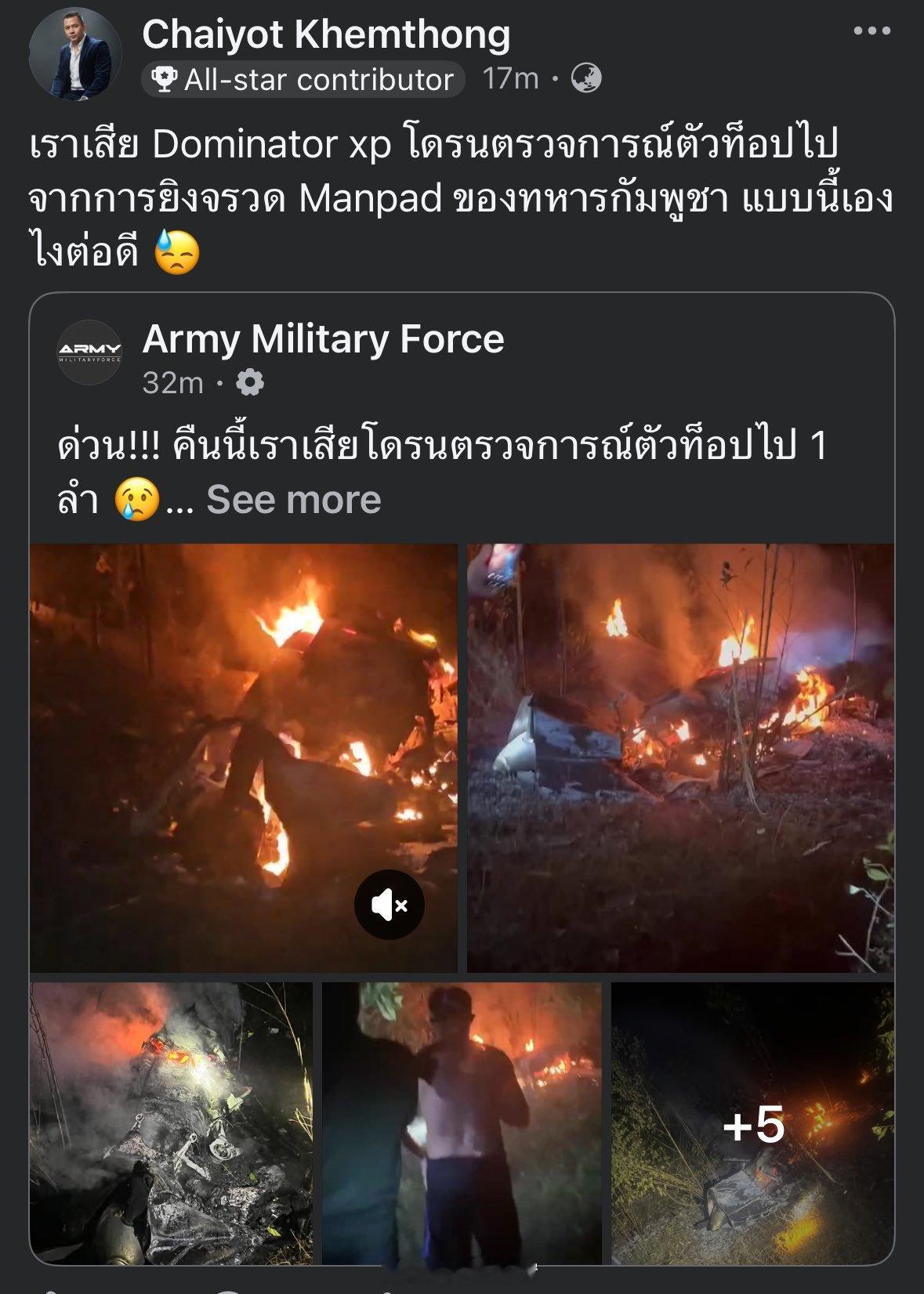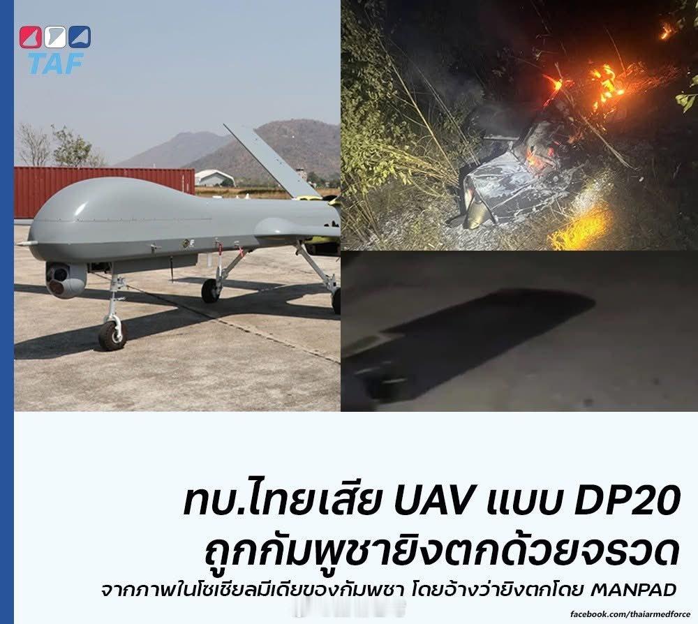 泰柬冲突柬埔寨击落泰国无人机的相关报道和现场照片,目前判断击落的是DP-20无人机的可能性较大。 泰军回应为何不理会美方停火呼吁