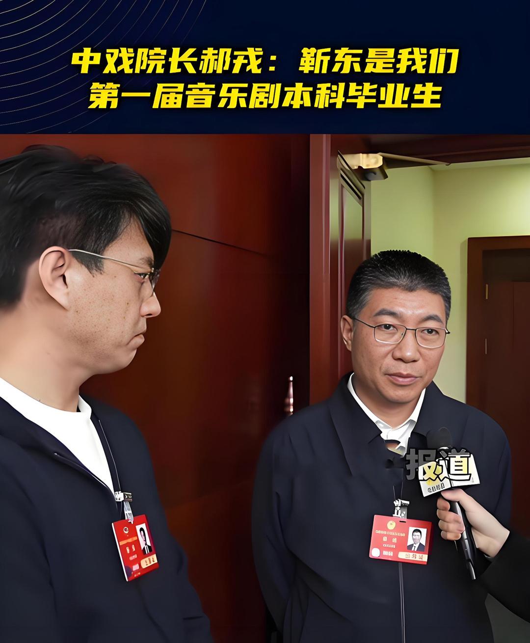 没想到中央戏剧学院的郝院长是个戏精,擅长表演,在多部电视剧、电影里面扮演过不同的角色。我以为以他这样的身份和地位,平常就坐在办公室研究表演理论,写几篇论文搞课题,或者当评委指导别人。 其实他是正儿八经的戏剧学院表演系毕业留校任教,他说过的一句话很实在,表演系老师也得会演戏。他就带头做出了表率,在电视剧《婚姻保卫战》、《爸爸快长大》、《中关村风云》、电影《古玩》里面都有戏份。 艺术来源于实践,他把话剧、音乐剧、电影表演、导演都玩了个遍,拿过话剧“金狮奖”导演奖、被评为有突出贡献的100位电影工作者。他在文化圈是实至名归的大佬,在中国音乐剧协会、话剧协会、文联、北京电影家协会都担任了职务。 他不仅会表演,教书育人也有一套,获得过北京市高等教育教学成果一等奖。著名演员靳东就是他的学生,当年靳东是中央戏剧学院第一届音乐剧本科毕业生,郝院长正好是靳东的班主任。靳东能取得现在的耀眼成绩,肯定离不开老师的栽培。 看看郝院长和靳东站在一起接受采访的画面,靳东在老师面前毕恭毕敬,双手交叉在前,一直听老师说话。靳东略微低头,表情还有点拘谨,像极了当年我们上学时在老师面前诚惶诚恐的样子。 如果靳东知道自己的老师上了热搜,他会不会很惊讶?