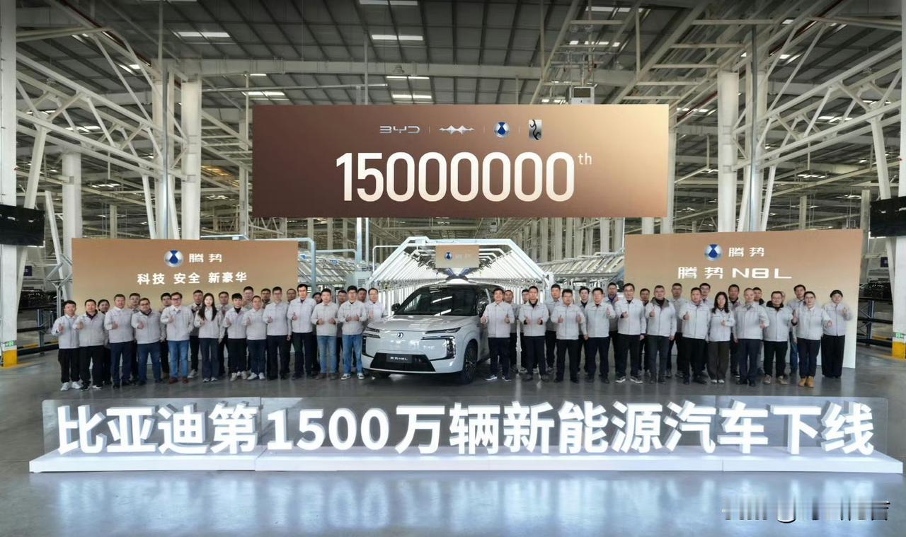 300万辆,500万辆,800万辆,1000万辆,1200万辆,1400万辆。1400万在巴西工厂下线还没多久,比亚迪第1500万辆新能源汽车下线了,可喜可贺。如今比亚迪新能源汽车工厂,在泰国,在乌兹别克斯坦,在巴西,如今的比亚迪已经是世界名牌车企。很多人买新能源汽车呀,总要拿比亚迪新能源汽车对比,因为比亚迪新能源是自己的三电技术,全栈自研。别的车企拿来对比也正常,在新能源汽车比亚迪是摸着石头过河,它们摸着比亚迪过河。