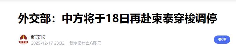 泰柬分别致电王毅,欢迎中方居中调停,泰柬冲突迎来和平曙光,特朗普估计又要郁闷了 根据外交部通报,18日,中国外交部特使赶赴了柬埔寨和泰国,启动穿梭外交,调停两国矛盾;同一天,王毅外长也分别与泰柬两国外长通了电话。 随后,泰柬双方均公开表态欢迎中方居中调停,这一态度与此前面对美方调停时的敷衍形成鲜明对比,也让持续升级的边境冲突终于透出和平曙光。 要搞懂这背后的逻辑,首先得看清泰柬冲突的严峻程度——本轮冲突自12月7日爆发以来,双方已在13条战线上展开激烈交战,泰国军方出动F-16战斗机轰炸,柬埔寨则用BM-21火箭弹反击,战火直接蔓延至平民区,造成泰国9名士兵死亡、120余人受伤,柬埔寨平民死亡人数更是攀升至18人,受伤78人,短短十几天就有50万边境居民逃离家园,规模远超2008年至2011年的历次冲突,连医院、寺庙等民用和文化设施都未能幸免。 在这样的危急关头,泰柬两国之所以不约而同选择向中方求助,核心原因就是此前特朗普主导的调停彻底失灵,甚至让局势雪上加霜。 要知道,今年10月特朗普还曾高调见证泰柬在马来西亚签署停火协议,把这当成自己“阻止战争”的政绩大肆宣扬,可这份靠贸易关税威胁逼出来的协议,从一开始就埋下隐患——既没解决泰柬长达一个世纪的柏威夏寺周边领土争议核心问题,也没建立任何后续监督机制,只是用外力强行压制矛盾。 果不其然,几周后冲突就再度爆发,特朗普自信满满地宣称“打个电话就能解决”,结果泰国总理阿努廷直接泼了冷水,明确表示“不会简单向美国要求让步”,柬埔寨也坚决否认美方所谓“地雷意外”的说法,双方冲突反而愈演愈烈。 反观中方调停,从一开始就站在了更靠谱的立场上,泰柬冲突的根源是历史遗留的领土争议,这种深层次矛盾从来不是靠“交易式施压”能化解的,而中方一贯坚持不干涉别国内政、尊重各国主权的原则,这正是调停的前提。 更关键的是,中国与泰柬两国都保持着深厚的友好合作关系,既了解双方的核心诉求,也有能力推动双方坐下来协商,从实际行动来看,中方没有像特朗普那样只靠电话“隔空喊话”,而是直接派出特使赶赴两国开展穿梭外交,王毅外长的通话也聚焦于“推动双方通过对话协商解决分歧”,这种务实且尊重的态度,自然能获得泰柬双方的认可,这也是和平曙光能够出现的关键所在。 而中方调停的顺利推进,无疑让特朗普的“调停神话”再次破灭,估计这会儿正郁闷得直跺脚,要知道重返白宫后特朗普一直热衷于扮演“国际调停专业户”,总觉得靠贸易筹码和高调表态就能左右国际局势,可在泰柬冲突上的表现实在拉胯。 12月12日他还高调宣布泰柬“回归和平协定”,结果几小时后双方就继续交火;后来又试图用暂停贸易谈判施压泰国,反而被阿努廷公开表示“不在乎关税,大不了卖给其他国家”,如今泰柬转头就欢迎中方调停,相当于直接给了特朗普一记耳光,这说明国际社会早已看清,那种只图表面政绩、不顾问题根源的“特式调停”根本不靠谱,而中方坚持的公平公正调停理念,才是解决国际冲突的有效路径。 说到底,泰柬欢迎中方调停、和平曙光初现的背后,是国际社会对中国外交理念的认可,也是对美方霸权式调停的否定,相信在中方的积极推动下,泰柬双方能够尽快停火止战,让50万流离失所的民众早日重返家园,这也是国际社会共同的期待。