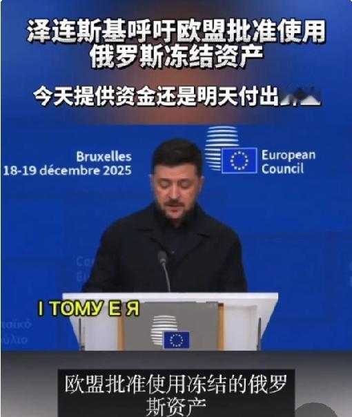 泽连斯基强烈呼吁欧盟批准使用冻结的俄罗斯资产,提供巨额赔偿。贷款规模约数百亿欧元,主要用于乌克兰军事和经济需求。他强调如果没有这项资金支持,乌克兰将面临重大问题,特别是在2026-2027年的融资方面。 ​ ​如今的欧盟好像一个“受气包”,一边是来自俄罗斯的威胁与警告。一边是不嫌事大的乌克兰气吞山河的要求命令。然而,欧盟内部也是各自述说着自己的立场,但就是没有人敢动真格的。 如今的欧盟应该说是被乌克兰彻底带沟里了,十几轮制裁下来没把俄罗斯怎么着,却把自己玩残了。人穷志短的欧盟面对着嗷嗷待哺的乌克兰,眼瞅着大笔巨大的俄罗斯资产,又怎么能让它们不动心? ​ 在这个问题上,感觉还是那位卡拉斯最上心,按照她的说法,就是欧盟出台一部法律,其实就是让花掉这笔被冻结的俄罗斯资产合法化。​届时比和时只需遵守法律,把这笔钱拿出来即可。