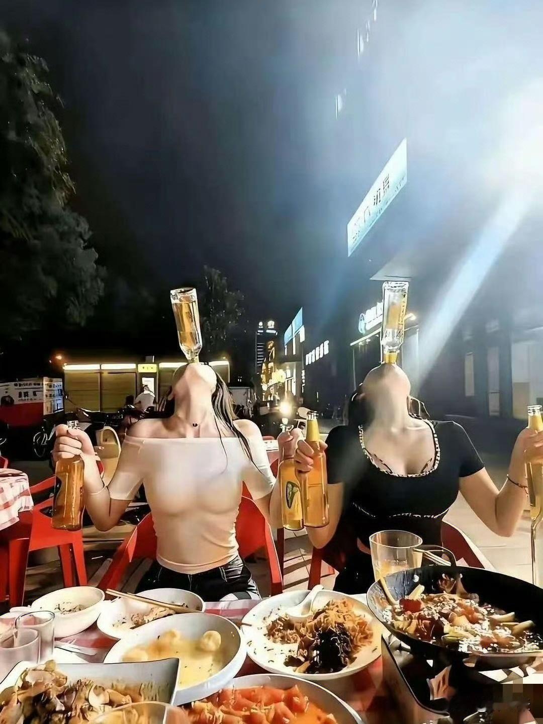 菜是挺多的,但是饮酒也要适度啊小姐姐,这也太拼了! 看到两个小姐姐仰头叼着酒瓶对瓶吹,真的是惊掉下巴了!还能这么喝酒啊,不怕呛到啊! 适量饮酒使人心情愉悦,可是这么拼真的好吗?她俩除了嘴里叼着一瓶,两只手还各拿一瓶! 太能喝了,看图片右边黑衣服小姐姐已经干了一瓶了! 你们会让女朋友这么喝酒吗?