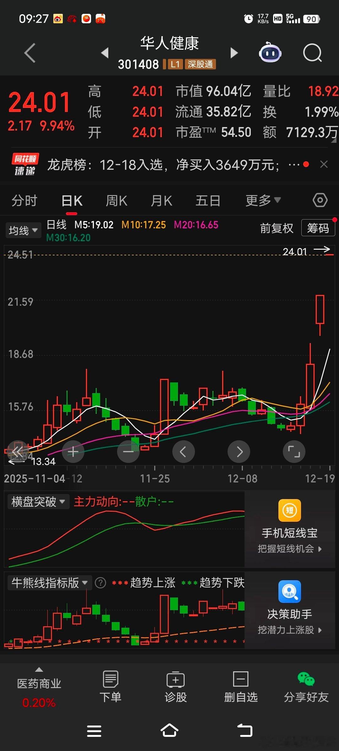 提示 跟踪的华人健康继续高开10点有跟上的注意高抛,减仓或落袋为安