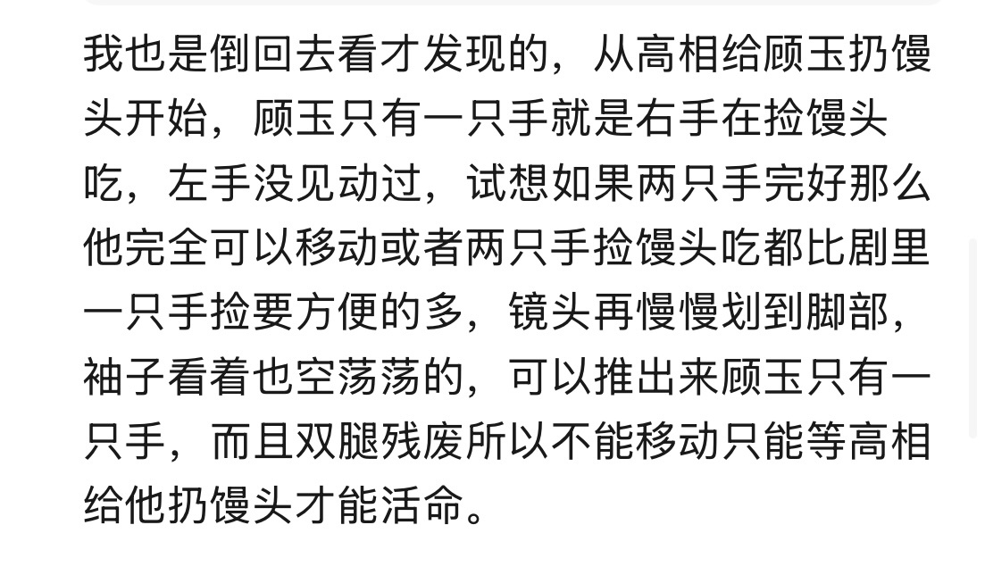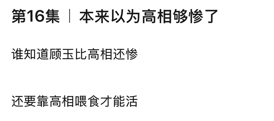 长安二十四计 看到高相觉得他真惨,转头顾玉在下水道里和老鼠挣馒头,又觉得高相不惨了,因为有人比你更惨,果然生活是要对比的。