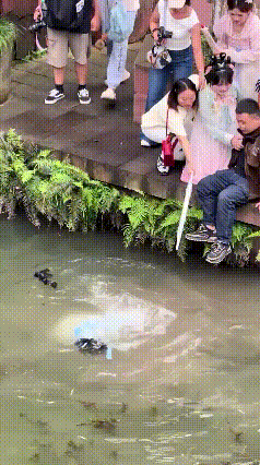 黑衣男想英雄救美, 却硬生生被拽了回来! [我想静静][捂脸][我想静静][捂脸][我想静静][捂脸] 不过还好,有白衣男救了美, 大家也要注意防落水! 安全最重要! [比心][比心][比心][比心][比心][比心]