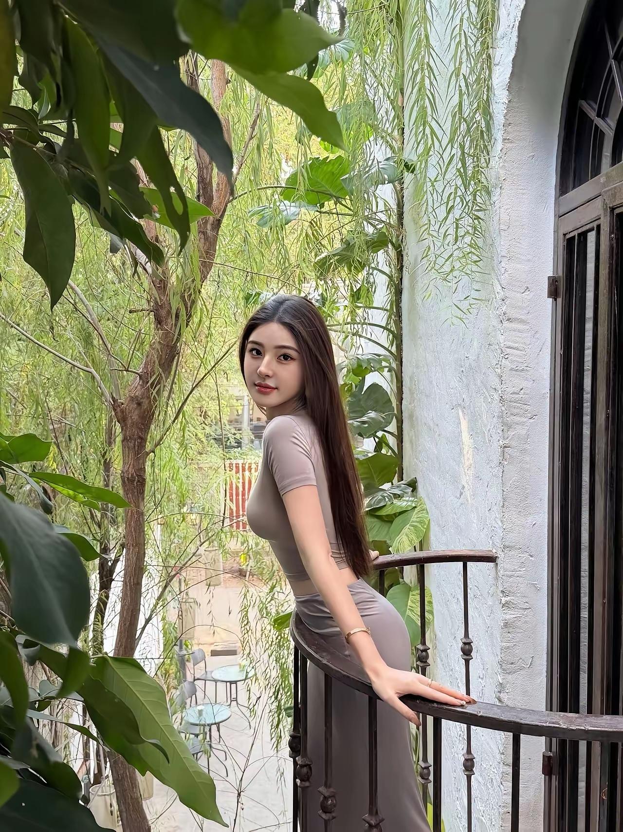 优雅气质,绿意盎然,时尚穿搭,自然之美