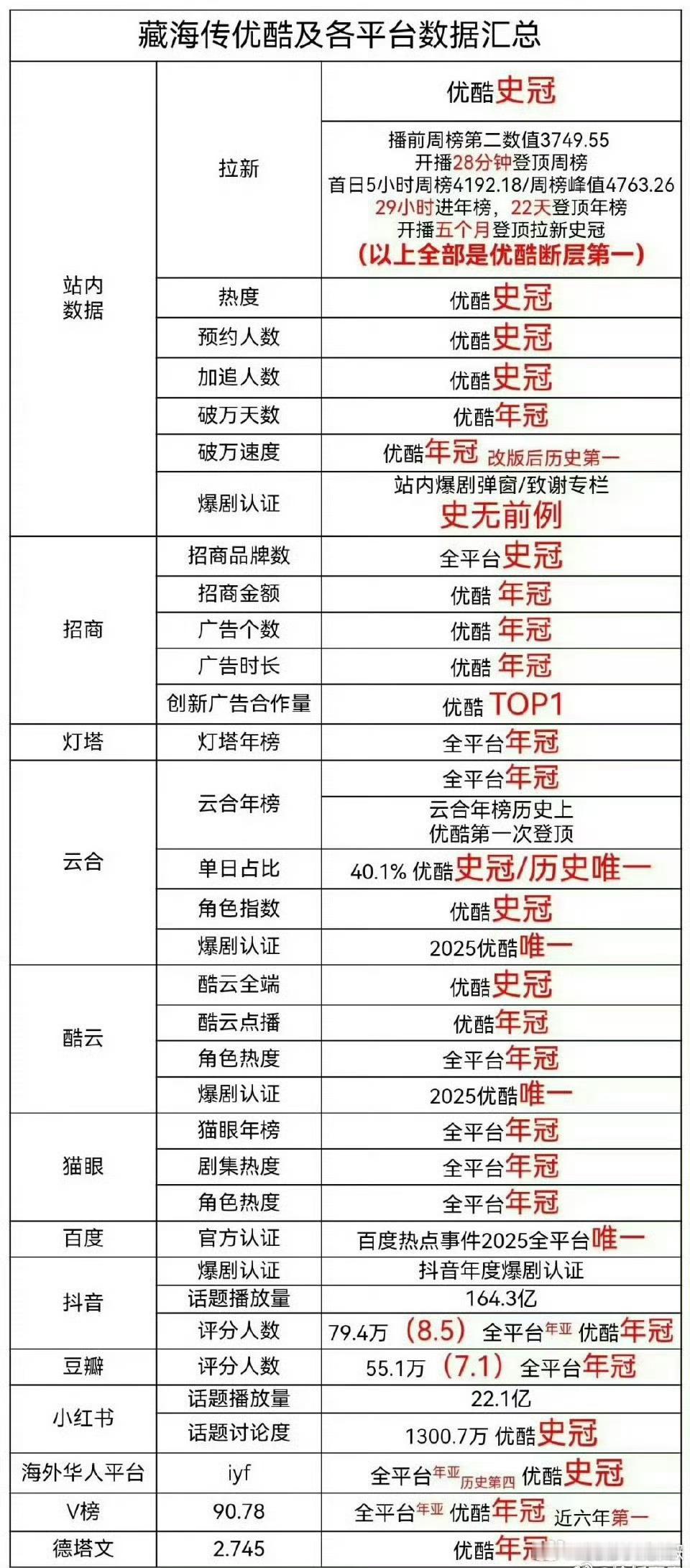 不看统计不知道《藏海传》这么多史冠年冠啊?