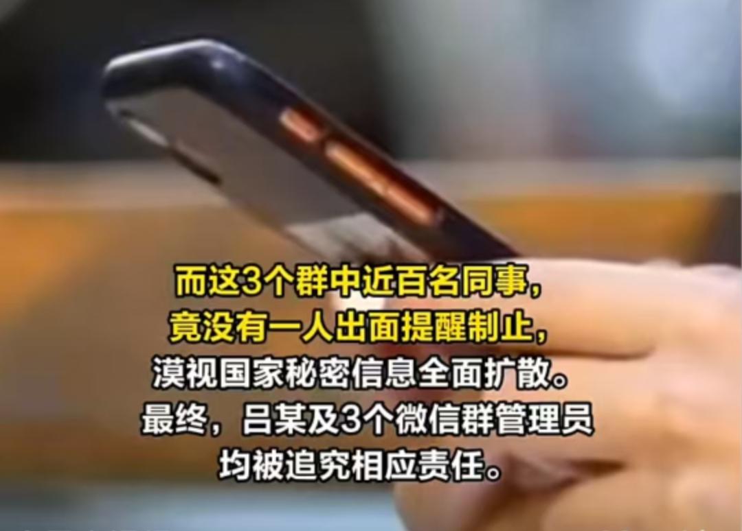 12月18日,某单位工作人员吕某因疏忽在工作群发布国家秘密信息,引发一场令人警醒的泄密事件。这条信息迅速被3个微信群转发,近百名同事目睹却无人制止,最终导致秘密全面扩散。吕某及涉事群管理员双双被追究责任,这起案例像一面镜子,照出了当前工作群保密管理的诸多漏洞。 微信、QQ等工作群早已成为泄密"高发地"。近年类似案件频发,便捷性背后藏着巨大风险。保密法第五条明确规定,国家秘密受法律保护,所有机关、团体和公民都有保密义务。而"谁建群谁负责、谁管理谁负责"的原则,更是给群管理员戴上了紧箍咒。 这起事件暴露出三个致命问题:管理责任缺位、护密意识薄弱、制度机制缺失。近百名同事的沉默,比泄密本身更令人深思。当秘密在眼前扩散,为什么没有人站出来制止?这种集体沉默背后,是保密教育的缺失,还是责任意识的淡漠? 国家保密部门早已开通12336举报电话,为公众提供了举报泄密线索的渠道。但更重要的是,每个使用工作群的人都该绷紧保密这根弦。发消息前多一秒思考,看到可疑信息多一份警惕,可能就能避免一场泄密事故。 吕某的教训告诉我们,工作群不是私人聊天室,每一条信息都可能关乎国家安全。群管理员不能只当"甩手掌柜",建群就要担起管理责任。而群成员也不是旁观者,看到泄密行为及时制止或举报,既是义务,也是保护自己和单位。 这起事件给所有使用工作群的人敲响了警钟。保密无小事,责任重于山。在享受即时通讯便利的同时,千万别忘了,有些信息一旦发出,就再也收不回来了。工作群里的每一次点击,都可能成为决定秘密命运的开关。 以上内容仅供参考和借鉴