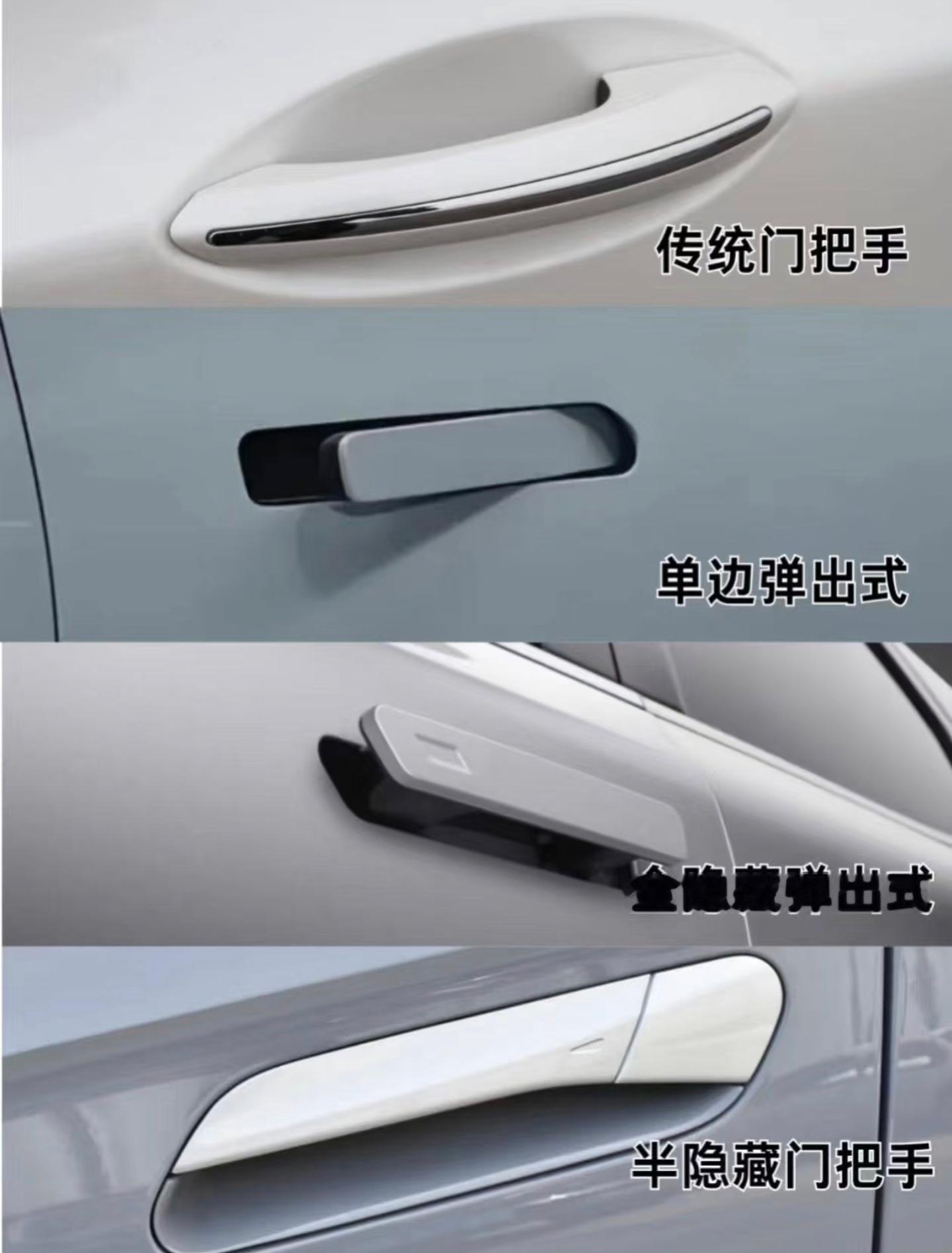明确禁止全隐藏式门把手工信部新规明确要求车门必须保留机械释放功能+≥60mm×20mm×25mm操作空间,2027年正式实施大家觉得以下门把手哪种最可?