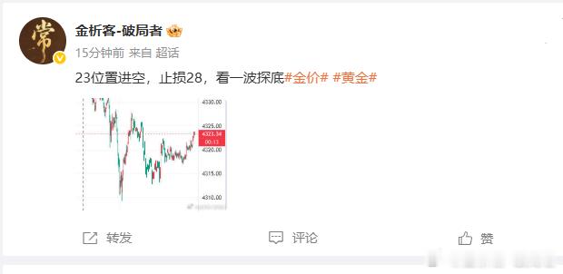有始有终,上单23空护利后保本损走了,26位置继续空黄金金价