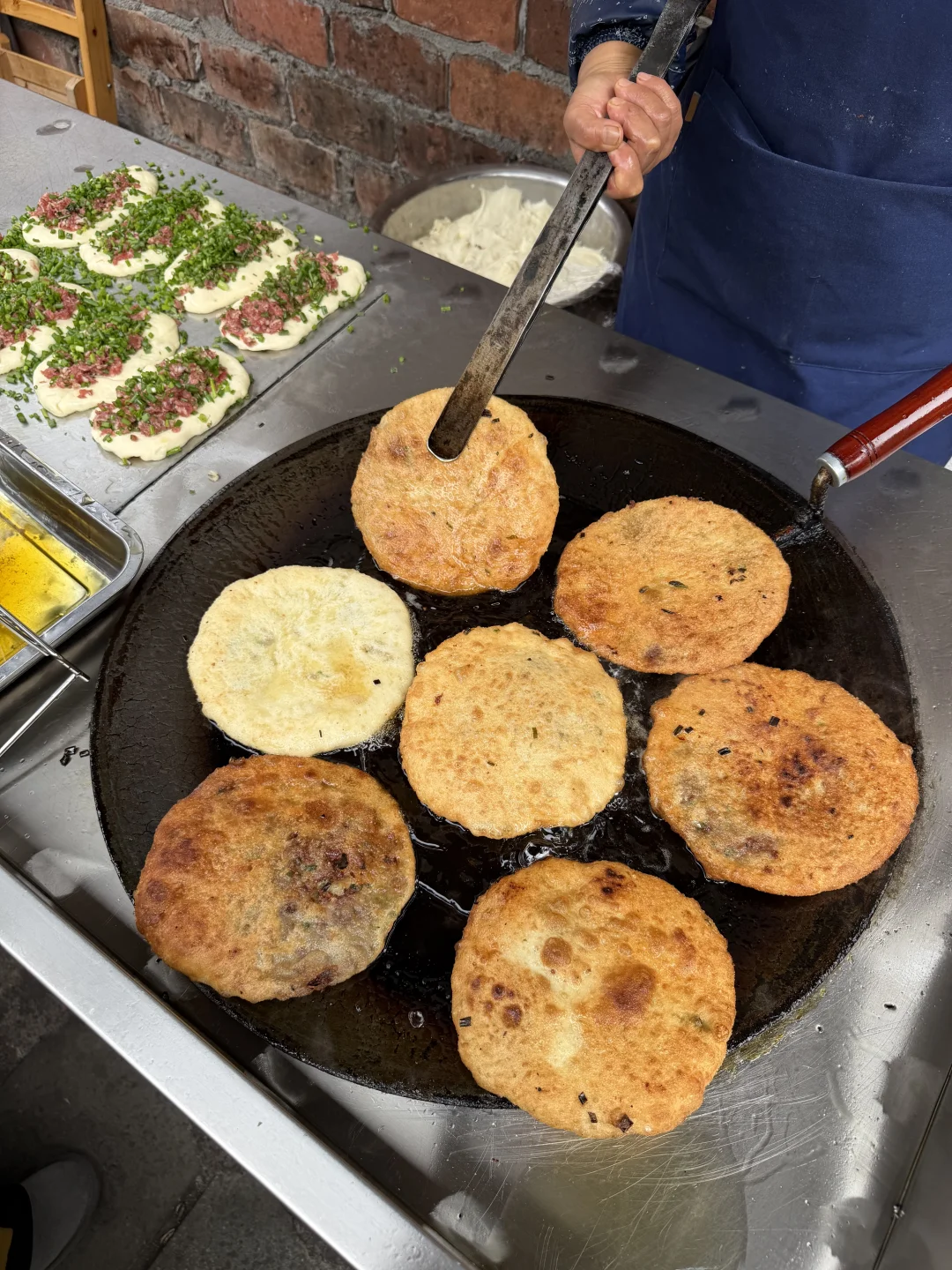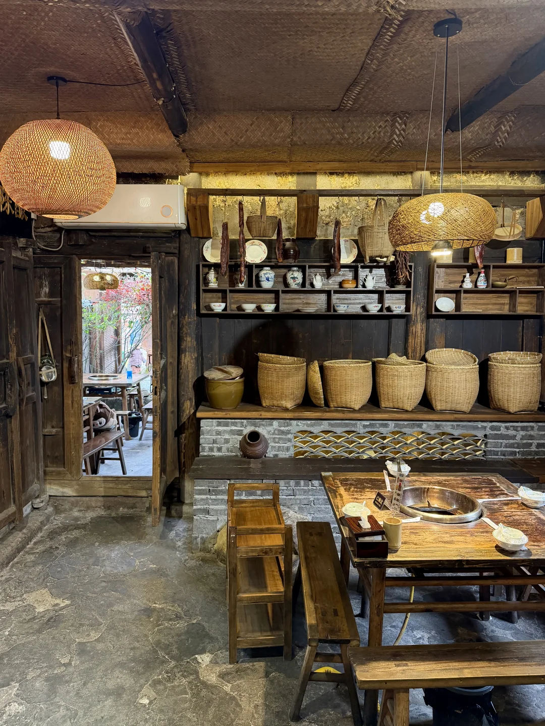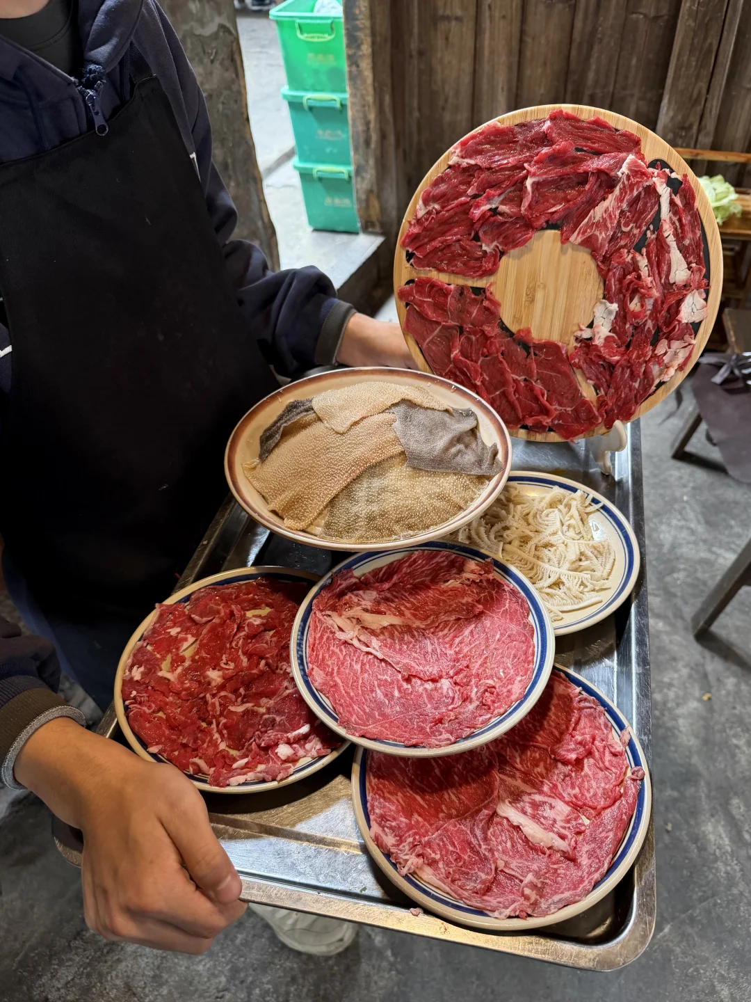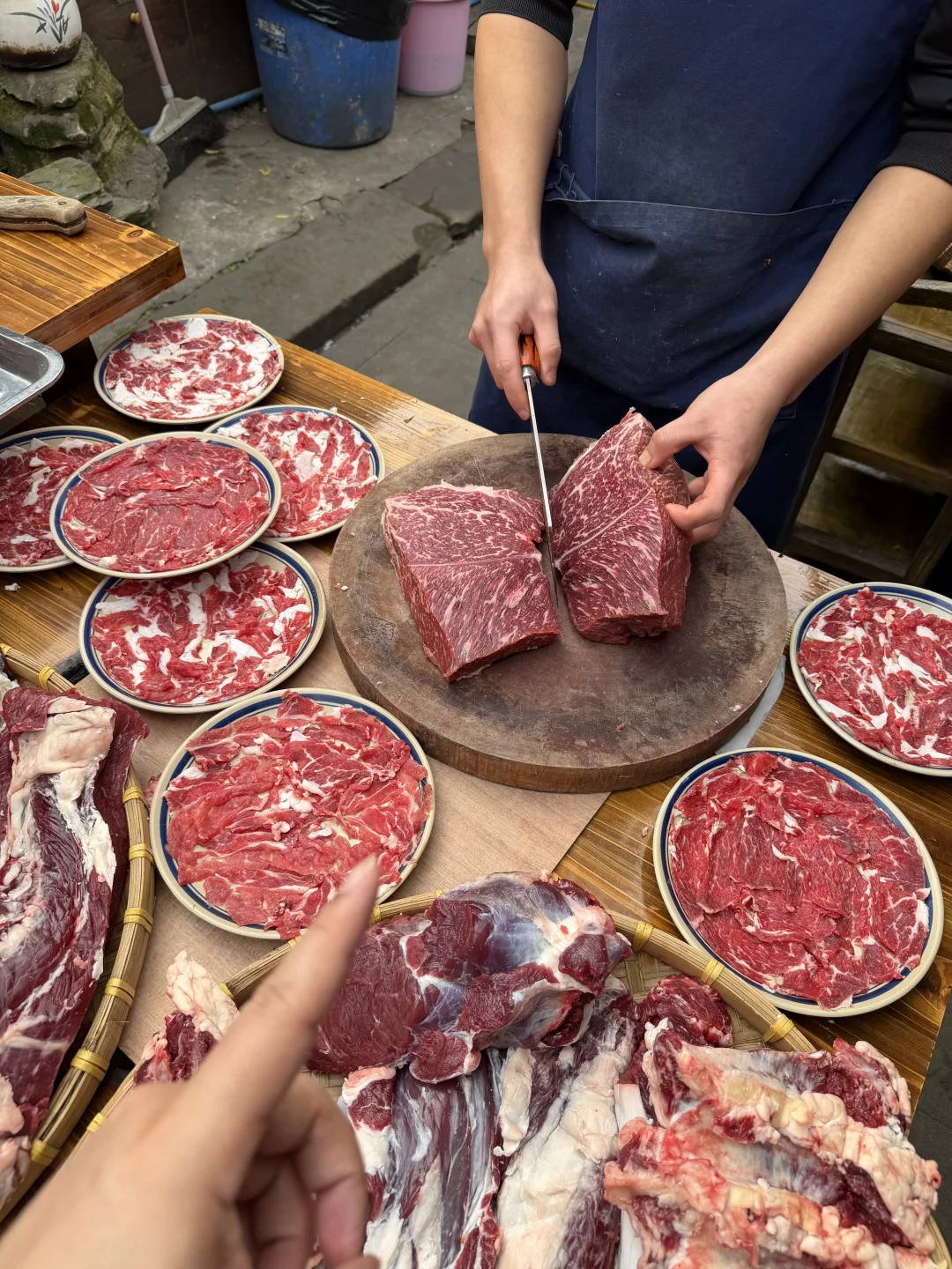 在苏稽古镇上,本地人推荐我们去的一家百年老宅里的跷脚牛肉火锅!好多都是一大家子来吃的,一走进去真的就感受到老宅的那种魅力🥹🥹!! 锅底我们选的清汤(也可以双拼),建议先煮菌菇,全是食材的鲜味!然后牛肋排和雪花牛肉(好美的大理石纹😍😍)一定要点!师傅现切的,品质肉眼可见!鲜烧牛蹄筋拌饭也好好吃!! 门口还有现做的软面牛肉锅盔,也有红糖馅的,一定要趁热吃!我们说了下次来乐山还会再吃!!