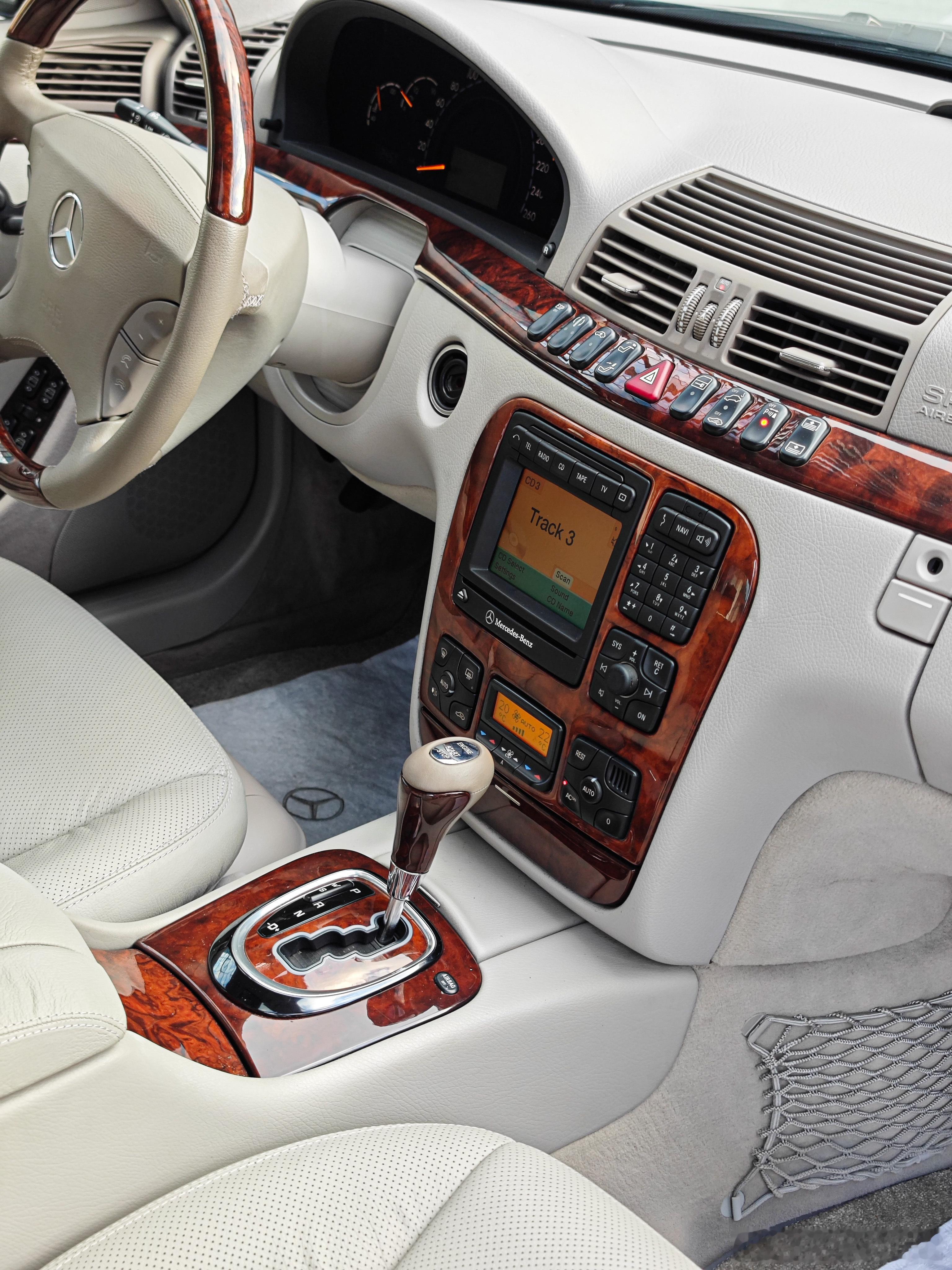 文字不知道怎么描述了直接看图片吧,W220 S级,蝴蝶奔。02年出厂,03年上牌,一手车。20几年就开了不到10万公里。内饰所有东西都是原厂的,所有功能都是正常可用的,20几年了能保养成这样真的不容易。当前的S320,配置已经很高了,空气悬挂,电吸门,加热通风,后排电调,小桌板,后排“娱乐屏”,还有大哥大…