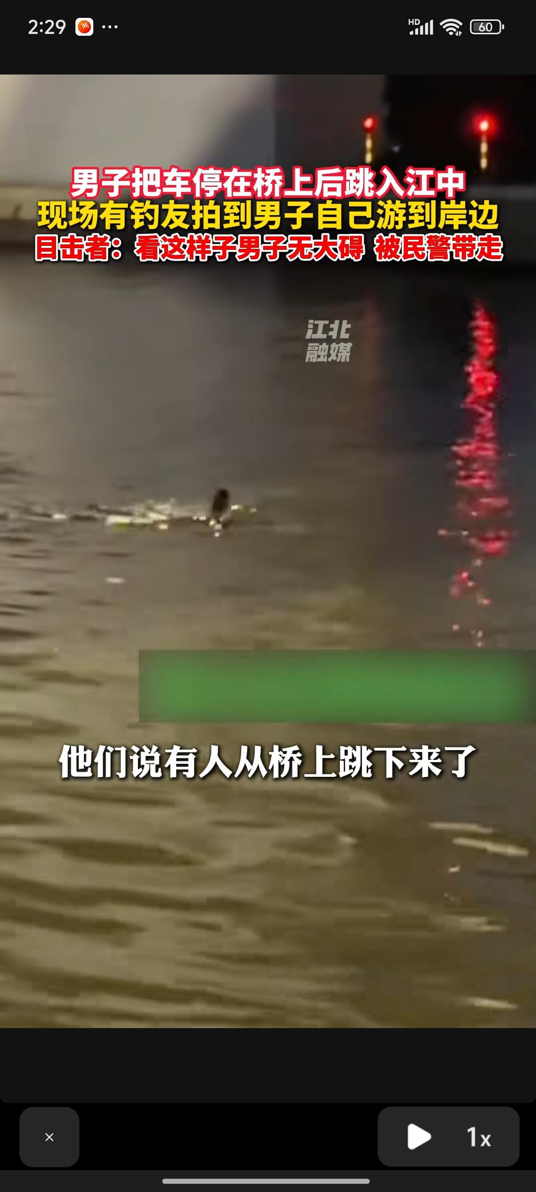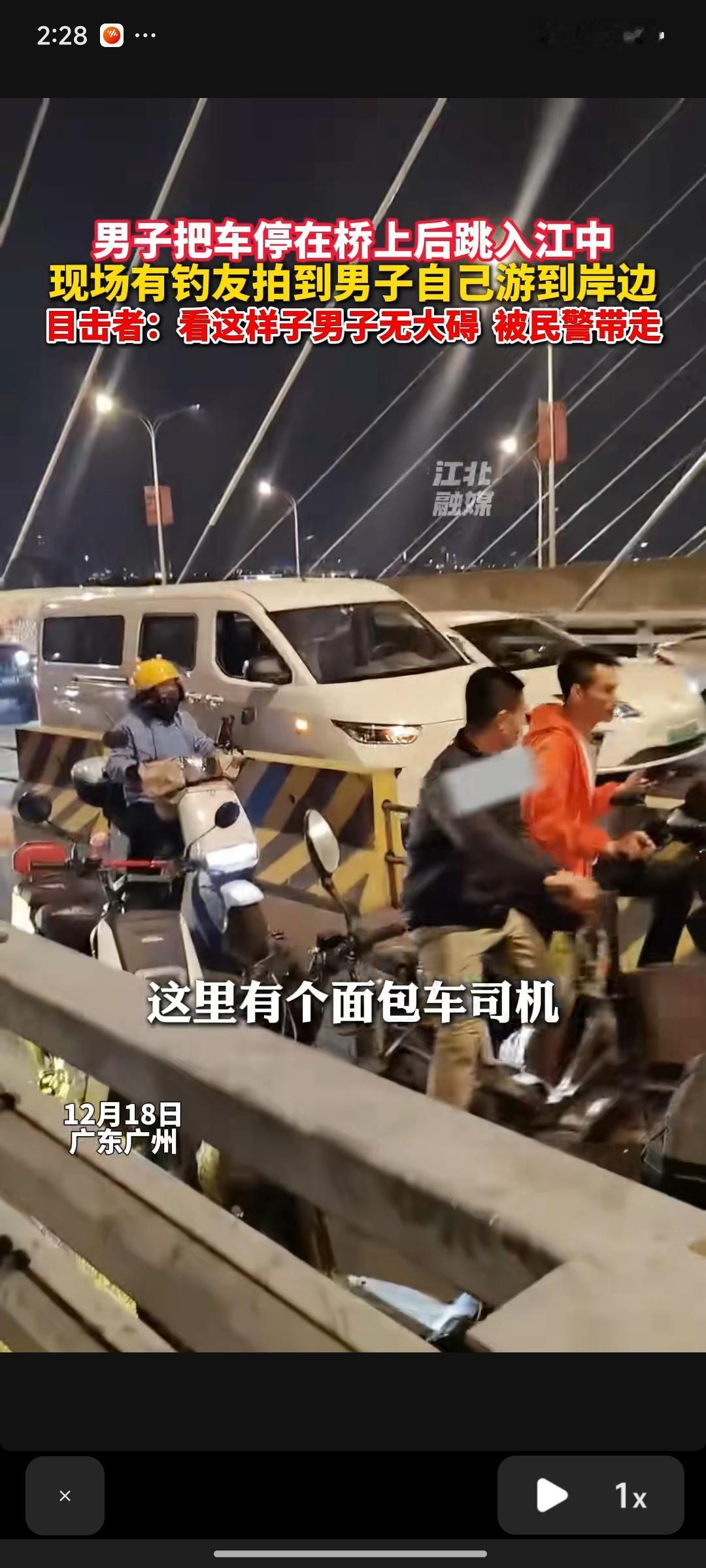 广州,一名男子将面包车停在桥上,旋即径直冲到桥边纵身一跃。桥上的钓友目睹此景,惊得目瞪口呆,回过神来后赶忙报警。 几分钟后,男子浮出水面,缓缓向岸边游去。此时,警察也赶到现场,将男子带走。 人在情绪激动或压抑时,往往会言语失当,或做出冲动之举。 等冷静下来,又会追悔莫及。 倘若明白人生变幻无常,既无永恒的快乐,亦无长久的痛苦。 这些快乐与悲伤在人生中交替出现,只要能管理好自己的情绪,便不会陷入情绪的泥沼。 当生命走向终点,回头再看漫漫人生路,那些曾压得你喘不过气的琐事,原来都轻如鸿毛。 珍惜当下,一句“我不在乎”,可以解千愁。活得安然自在、舒心快乐,才是最要紧的事。 来源:江北融媒