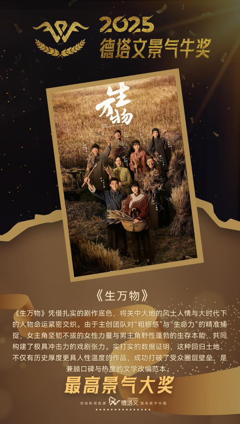 杨幂主演的《生万物》没有任何限定词的最高景气大奖🏆年冠生万物,年度剧王生万物!!!!
