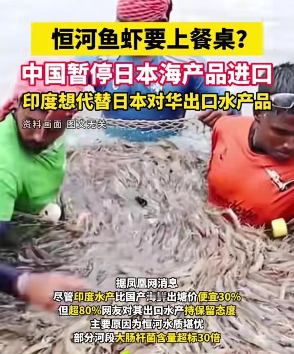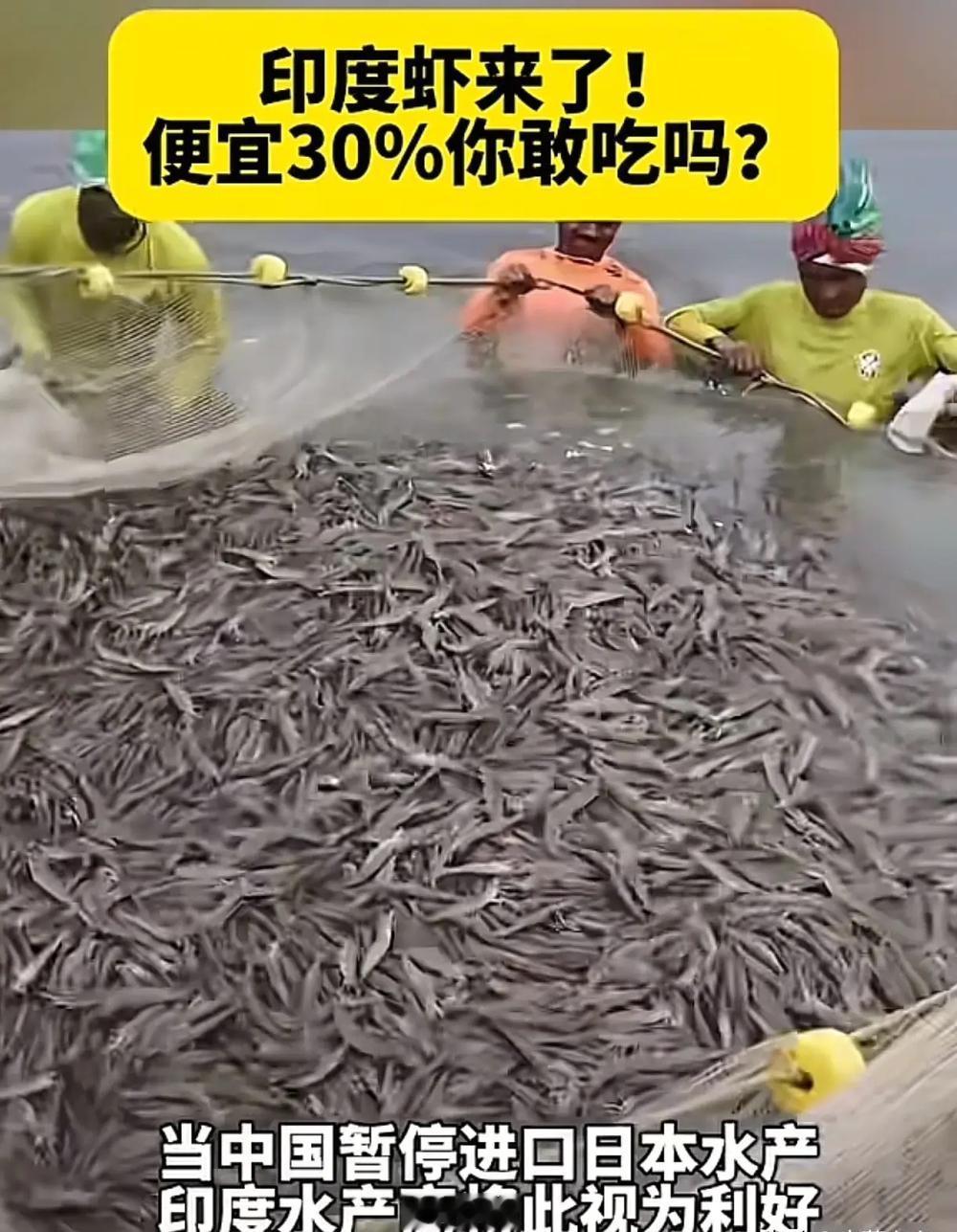 印度要给中国供应鱼虾,以后餐桌上的鱼虾会来自印度吗? 由于日本的问题,中国暂停对日本海产品的进口,印度看到了中国庞大的市场潜力,极力主动的要跟中国供应鱼虾,替代日本。 印度产品便宜30%有绝对价格优势,价格在中国绝对受欢迎,当看到鱼虾的产地来自印度恒河,印度的鱼虾还敢吃吗?印度食物 印度对华出口