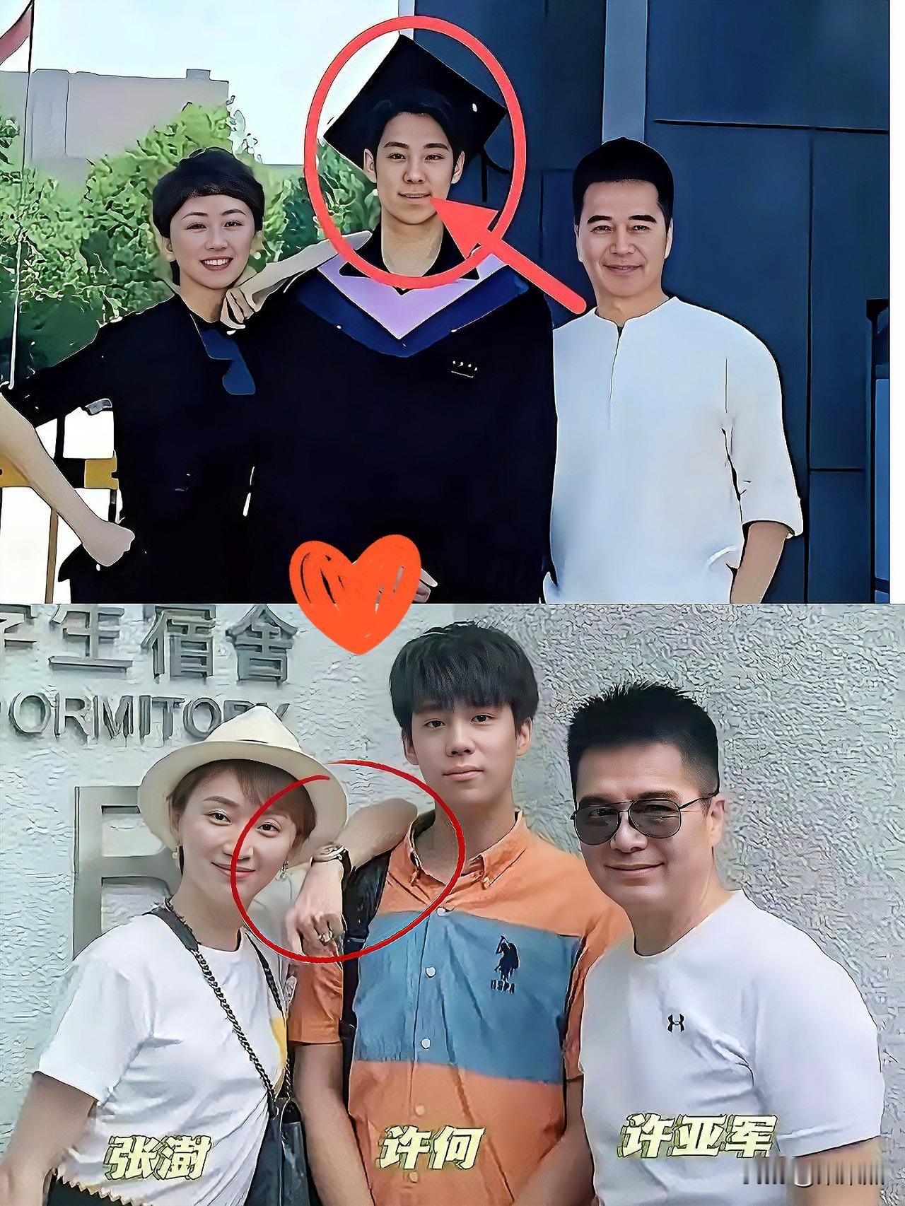 看许何跟许亚军、张澎夫妻的合照 我发现一个细节 那就是张澍那只手,执着的搭在许何肩上。 明明他高出一大截,她那姿势看着都累。 不过,这样看上去十分亲密。 许何再高又咋样 这手的位置比导航还准 从没跑偏过! 也有网友说,许何早早的就在外面租房了。 再看许何的脸,总是一副心事忡忡、不开心的样子。 照片中嘴巴虽然往上翘着,但表情出卖了他。 大家都说他是担心生病的母亲,这固然是人之常情。 我似乎还看到了点别的,孩子动作是紧绷的。有看出来的吗?欢迎评论区留言。