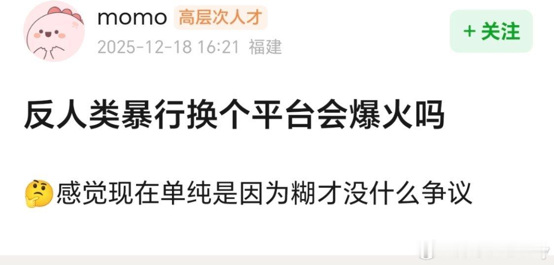 反人类暴行这部剧扑的也太狠了吧,主页讨论度0甚至连嘲扑的都没有,云合前十看不到
