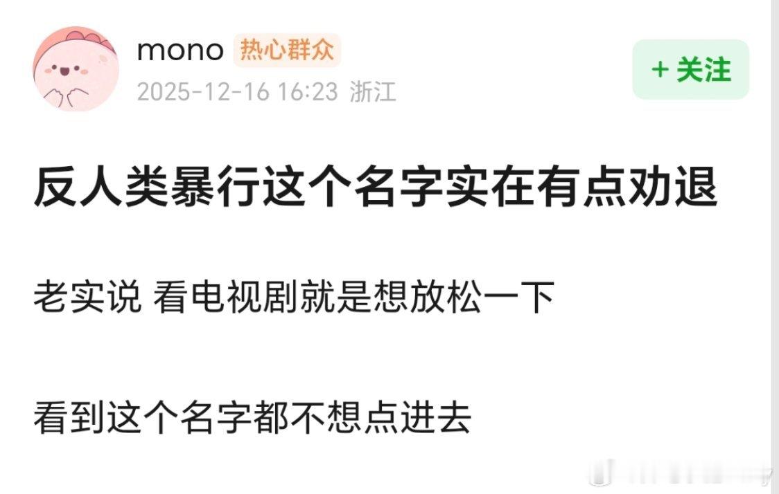 反人类暴行这部剧扑的也太狠了吧,主页讨论度0 甚至连嘲扑的都没有,云合前十看不到