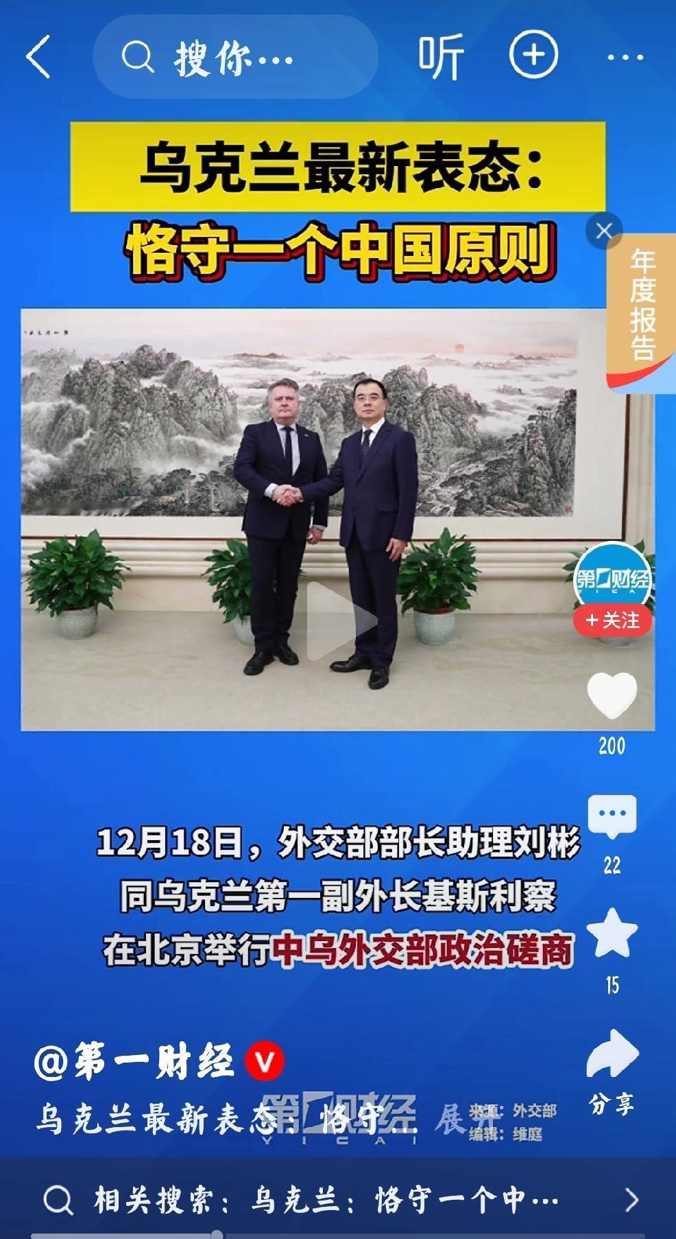 空手而归 个人观点:乌克兰空手而归,我们的外交原则是:不干涉他国内政。 乌克兰所有对中国的念头还是念头,不会也不能实现和落实。 个人感兴趣的是:这位乌克兰代表,不会又像法国总统马克龙一样,回到国内(乌克兰)又发表反华言论吧。