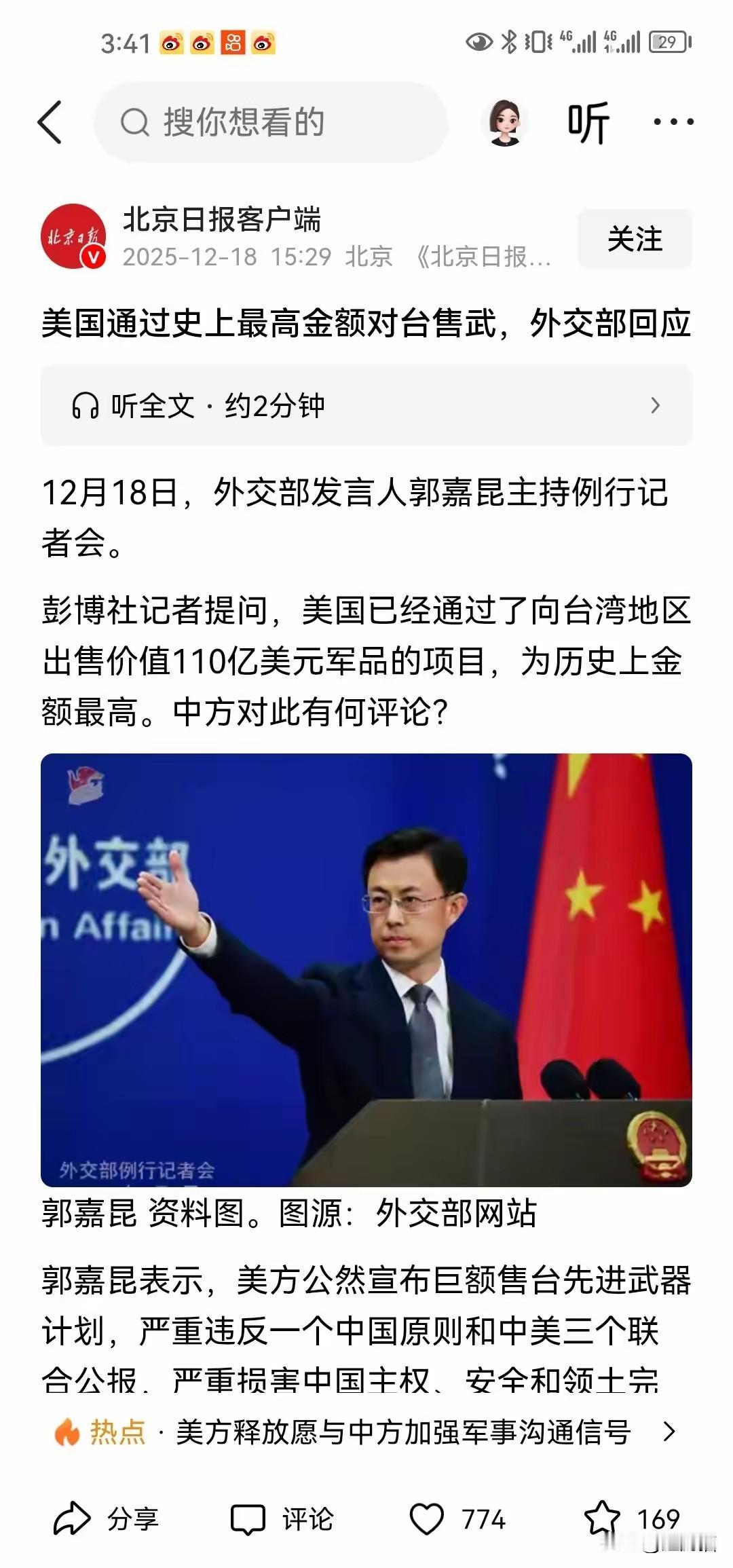 美国通过史上最高对台军售110亿美元,想一下,这可是个天文数字啊。这种武器卖到台湾,以后台湾用这些武器来打中国大陆的沿海地区,都是会受损的,关键是这些武器的稀土不是用中国的吗?为什么对他们的稀土没有切断呢,硬了一下后面又放开,这才是问题所在,台海不解决,这种痛苦会一直延续下去,长痛不如短痛,是时候要解决台湾问题了。 这笔百亿军售单看得人怒火中烧,里面的海马斯远程精准打击系统、M109A7自走炮还有多款反装甲导弹, 每一样都是冲着台海局势来的,都是奔着让两岸同胞互相伤害来的 。想想就揪心,这些武器要是真部署到台湾,对着的是咱们大陆的沿海城镇,是无数同胞的家园,一旦擦枪走火,遭殃的全是炎黄子孙。更让人意难平的是,这些杀伤力极强的武器里,藏着的可是咱们中国的稀土,美军现役和在研的153种主战装备,有87%的供应链都要过中国稀土加工这一关,这次售台的不少武器,都离不开咱们的中重稀土加持。 很多人都在纳闷,为啥不干脆切断稀土供应,直接掐住美国军工的七寸。毕竟咱们手里握着绝对的主动权,全球90%的稀土精炼产能都在咱们这儿,美国对中重稀土的依存度更是高达97%,真要是彻底断供,美国的军工产业链不出多久就得停摆。之前咱们确实硬气过,针对美国的极限施压,直接对钐、钆等7类关键中重稀土祭出出口管制,当时就让美国芯片企业成本暴涨,军工领域更是慌了手脚,连F-47六代机的研发都受了不小影响。可后来为啥又松了绑,没有把这张王牌彻底打到底,成了很多人心里的疑问。 其实这不是妥协,而是一盘大棋,是比单纯断供更高明的博弈。咱们要是一下子彻底切断稀土出口,短期看确实能打疼美国,可长期来看,反而会逼着美国联合澳大利亚、加拿大这些国家全力布局稀土产业链。就像当年的石油危机,中东国家的彻底断供,反倒让美国搞出了页岩油革命,最后成了全球最大石油出口国。现在咱们松绑稀土管制,是有前提有期限的,是因为美国先扛不住压力,取消了多项对华不合理关税和调查才做出的对等让步,而且这只是暂停管制,出口许可审查没松,核心管控机制也都在,期限一到或者美国再搞动作,咱们随时能重新上锁。 咱们要的不是一时的痛快,是长久的主动权,是让美国离不开咱们的稀土产业链,让他们每次想搞动作前都得掂量掂量成本。可即便如此,这百亿对台军售还是给我们敲响了警钟,靠稀土博弈,靠反制施压,终究只能治标不能治本。只要台湾问题一天不解决,美国就会把台湾当成遏制中国的棋子,就会不断靠对台军售赚黑心钱、搅乱局势,这样的憋屈和隐患就会一直存在。 想想这些年,美国对台军售的额度越来越高,从几亿到几十亿,再到如今的百亿级别,一步步突破红线,就是瞅准了台海未统一的漏洞。民进党当局更是拿着台湾老百姓的血汗钱,大肆买武器,甘当美国的马前卒,把宝岛往火药桶上推,他们嘴里喊着“以武拒统”,实则是把台湾民众的安危抛到了脑后 。咱们大陆这边,要防备着对岸的武器威胁,要应对美国的挑衅施压,还要费心守护两岸同胞的利益,这样的痛苦反复上演,实在让人煎熬。 长痛真的不如短痛,彻底解决台湾问题,才是斩断这些麻烦的根本办法。只有实现祖国完全统一,美国才没了以台制华的筹码,百亿对台军售这样的闹剧才会彻底落幕。只有统一了,台湾的资源才会用在民生福祉上,而不是用来购买武器制造对立,两岸同胞才能安心发展,再也不用担惊受怕两岸兵戎相见。这不是好战,是为了长久的和平,是为了让中华民族再也不受这样的分裂之苦,这样的统一,早一天到来,就早一天让同胞们过上安稳日子。