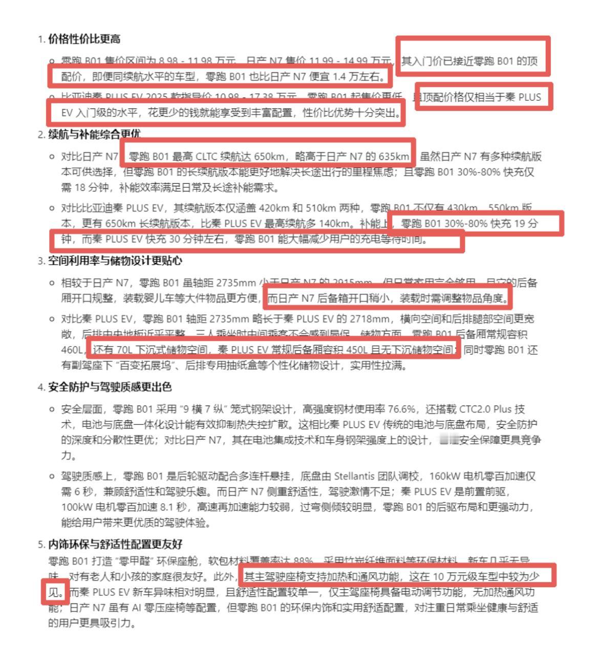 B01优惠后真香 普通牛马在供房贷,想买第一台电车,预算10万左右,彻底纠结了!我仔细算 过,咱看上的零跑B01,算上3000元红包补贴和送的终身质保、充电桩,相当 于直接省了好几万。 不过身边朋友都劝我多看看。老牌冠军比亚迪秦那确实稳,市场检验多年,满大 街都在跑,闭眼买不会错,但坐进去就网约车那样,不值得。沙发厂日产N7的 舒适度没得挑,座椅一坐就不想起来,但续航就没零跑这么多。 这么一比,无论是价格还是配置,B01就真太香了,朋友也说无脑冲就完事了,续 航扎实、快充给力、智驾不错,但就是品牌资历新点,让人心里有点打鼓。 所以真有用B01的兄弟吗?这车开久了到底省不省心?【来自懂车帝车友圈】