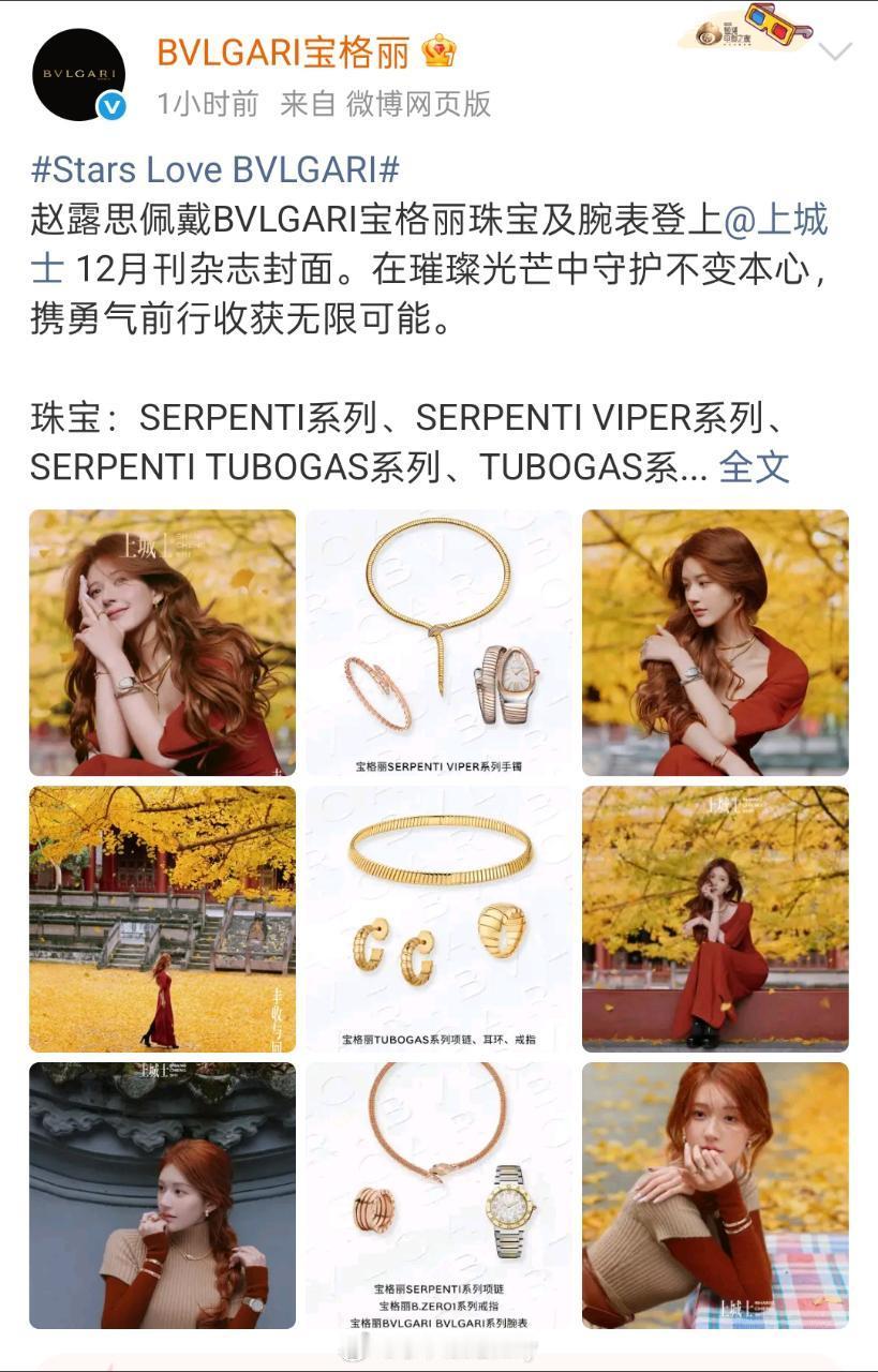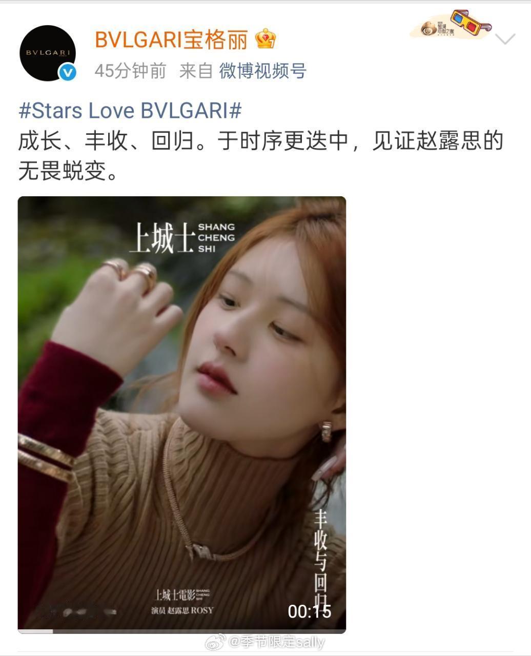 上城士闭年刊推封的宝格丽连续更新三条赵露思相关博,这就是爆剧🌸代言人的商业价值