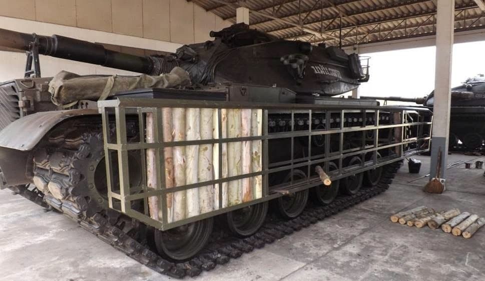 泰国陆军占领柬埔寨控制的鞍马隘口后出动推土机清理了柬埔寨建造的纪念碑和建筑物,有趣的是一辆VT-4坦克在炮塔侧面安装了竹杆制作的附加装甲,旨在防御反坦克火箭筒、反坦克导弹和FPV无人机的袭击。泰柬边境冲突现场画面泰柬冲突 【图2和图3】使用桉树棍和渔网制作的M113附加装甲挡住了一枚PF-89式单兵反坦克火箭弹【图4】泰国陆军使用植物装甲的历史可以追溯到上世纪80年代,大约十年前泰国陆军还开发出一种用于M60A3坦克的桉树棍装甲套件,单价仅为 1,150 美元,所需材料易于获取,成本也远低于从国外进口同类解决方案。其设计理念是,当坦克遭受反坦克武器命中时,装甲能够起到缓冲与防护作用。桉木的硬度属于中等到偏硬,比杨木硬、比橡木略软,具有良好的「硬度与稳定性平衡」,结构紧密且不易变形开裂,常被用于制作高承重力的胶合板、地板、家具等,其詹卡硬度约在800磅左右,但具体数值会因树种(如柳桉)、部位而有所差异。 【图7】菲律宾人还试过用厚纸板当附加装甲